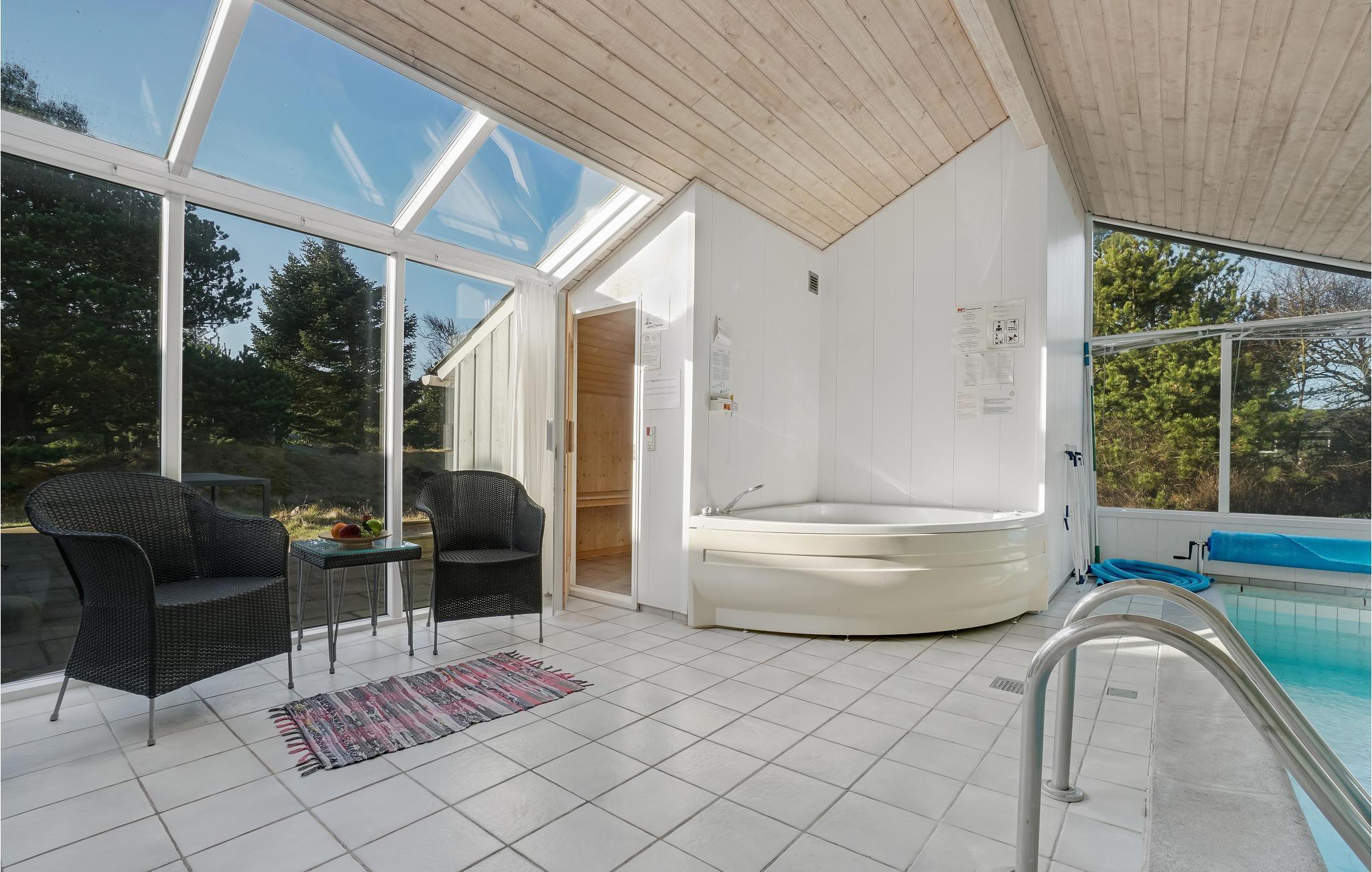 Hyggeligt fritidshus i Slettestrand med pool, sauna og spabad nær Vesterhavets brede, hvide sandstrand.