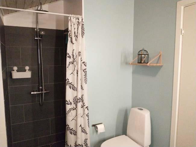 Selve huset er stort og rigtig indbydende at træde ind i. Her mødes man af en entre, hvor loftet går i kip. I denne lyse entre er her to døre på hver side. På højrehånd mødes man af husets to ud af tre værelser, hvor alle har en dobbeltseng. På venstrehånd mødes man af to lækre badeværelser, begge med brusebad, men den ene har den ekstra luksus, at have spabad. Hvilket er helt ideelt at bruge, til at slappe fuldstændig af i, med et glas champagne i hånden og stearinlys i vindueskarmene. Ingen bedre måde at koble af fra hverdagen på.
