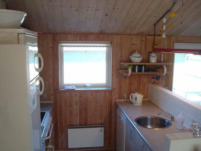 Når man træder ind i dette hus, mødes man af et rum som går op i kip. Denne entré hænger sammen med resten af det store og lyse køkken alrum. Her går man gennem den åbne gang indtil et hjertevarmt rum med plads til hele familien. Her finder man et lyst fint køkken, med halvvæg omkring sig. På den anden side af denne halvvæg er det store spisebord, hvor her både er en lang bænk og stole til. Centrummet i dette rum er en unik og smuk brændeovn, som sagtens vil kunne varme hele huset op. Resten af dette rum består af bløde møbler i to grupper. Den ene sofa er ved siden af brændeovnen, hvor man kan sidde og nyde varmen med en god bog eller se en film i fjernsynet. Har man lyst til familiehygge, kan man tage et af de mange brætspil som er på hylden over sofaen og tage det hen til sofabordet, som er omgivet af to lænestole og to bløde lædersofaer.