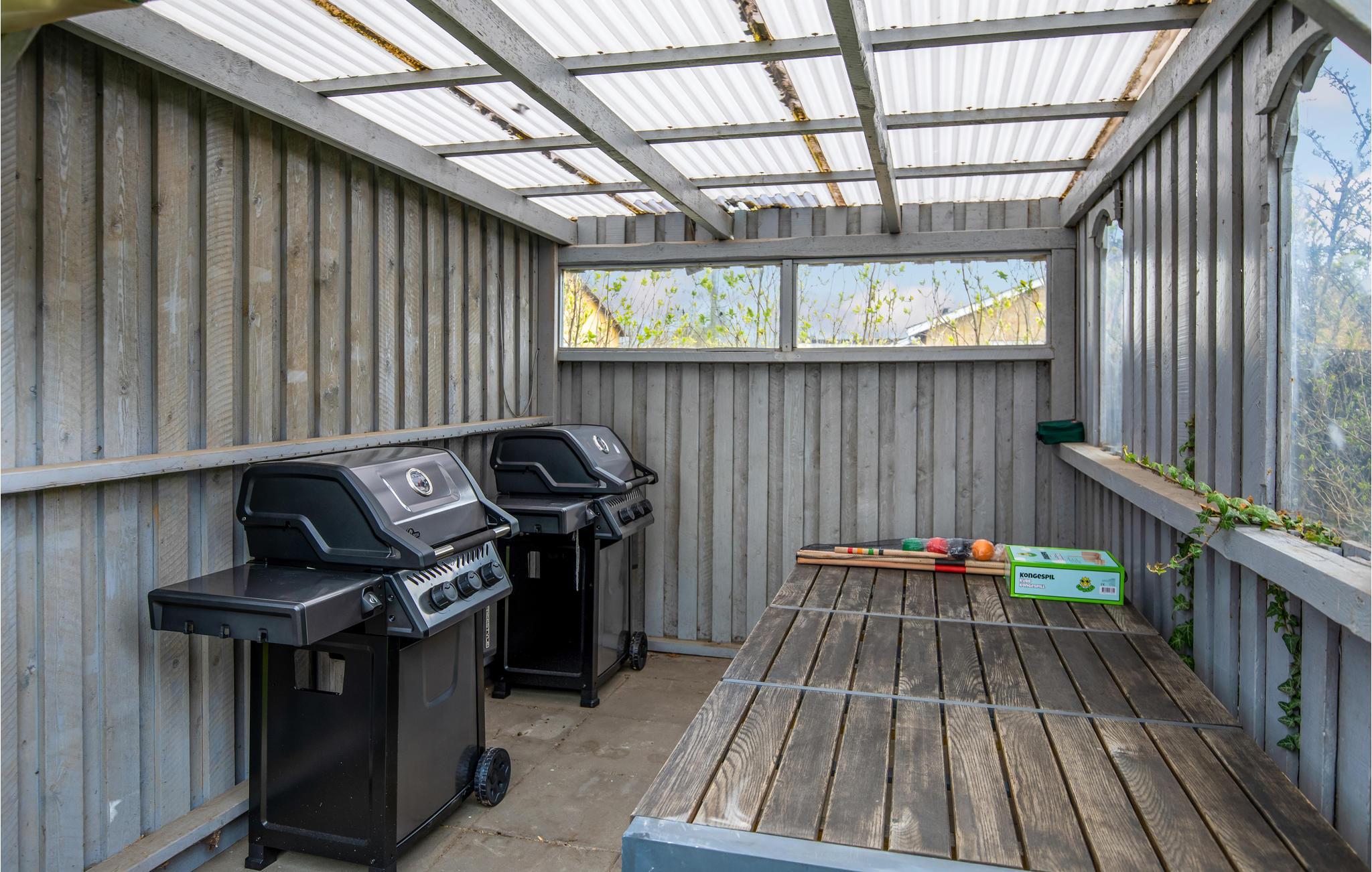 Udendørs har I adgang til en hyggelig, fælles gårdhave med have, grill og havemøbler. Slap af her i det solrige vejr med et godt krydsord, lad børnene løbe rundt og lege og nyd de lune, magiske sommeraftener med saftige bøffer og et godt glas vin.