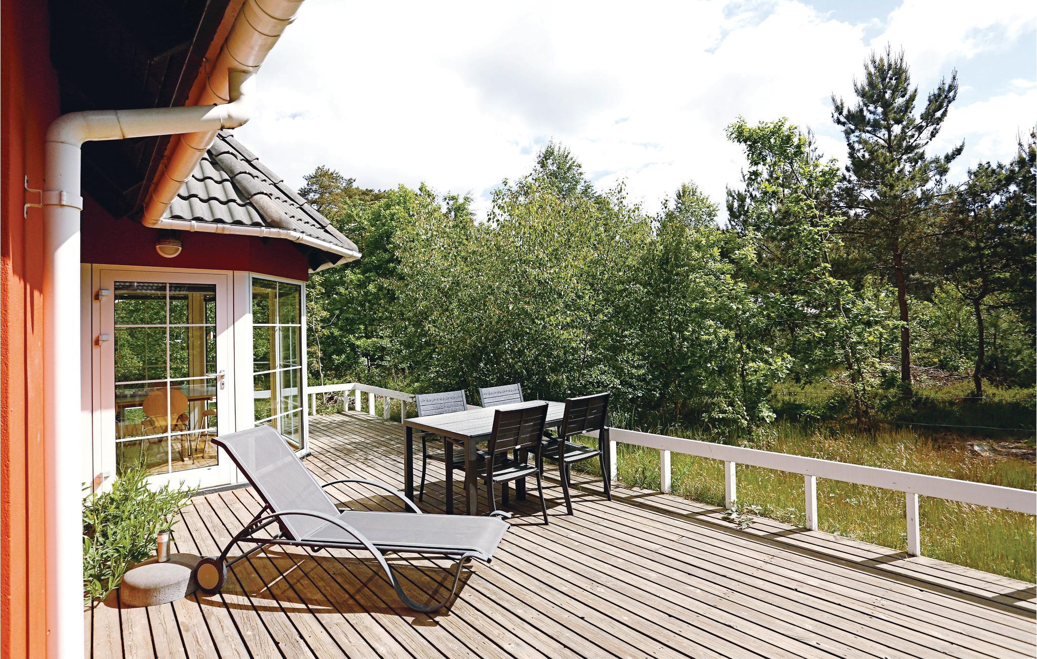 Flot feriehus i Snogebæk med stor terrasse, udekøkken og tæt på havet, perfekt til en familieferie på Bornholm.