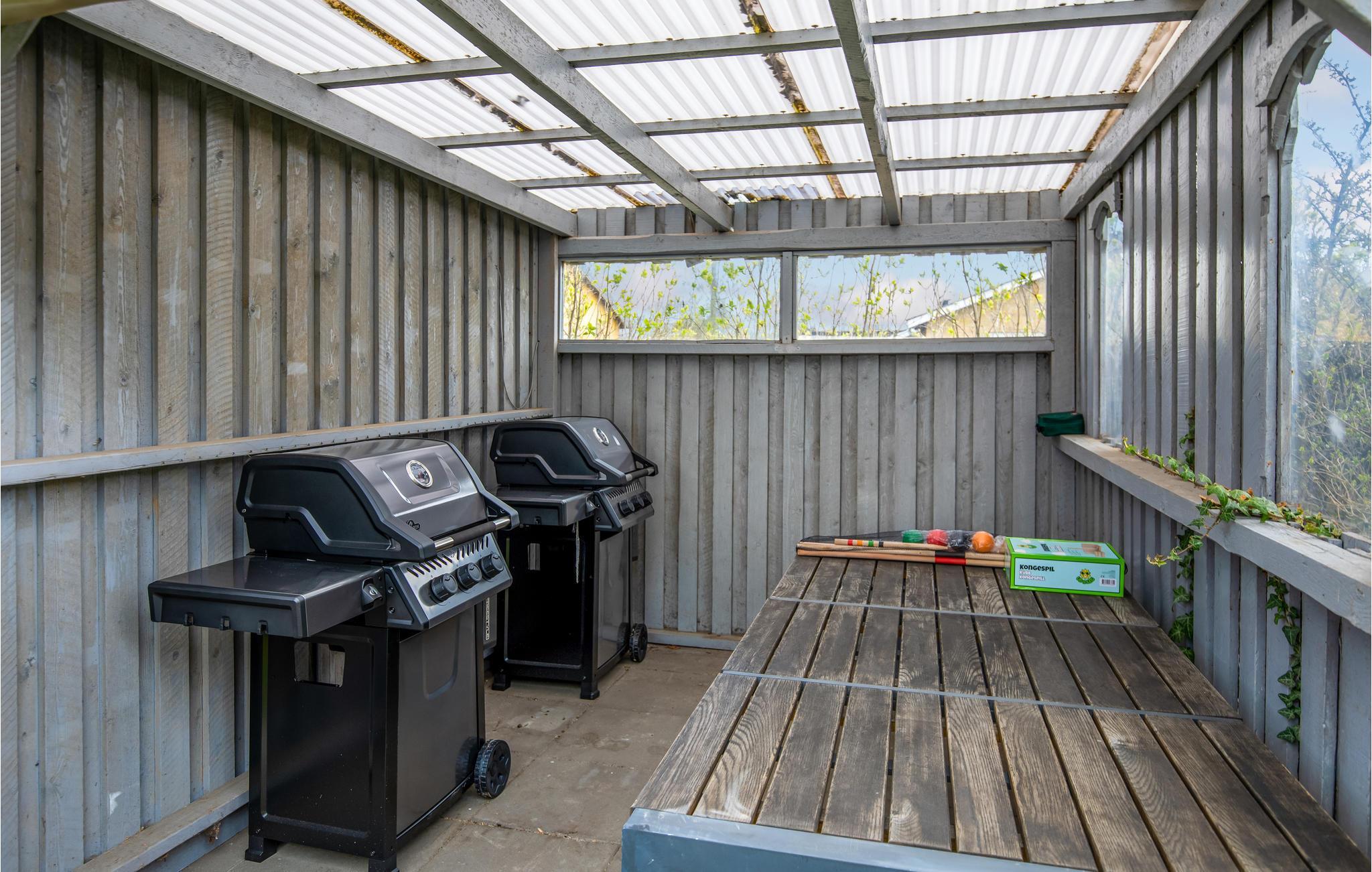 Udenfor har I adgang til en fælles gårdhave med have, grill og havemøbler. Her kan I slappe af, når solen skinner og nyde sommeraftenerne med lækre måltider under åben himmel.