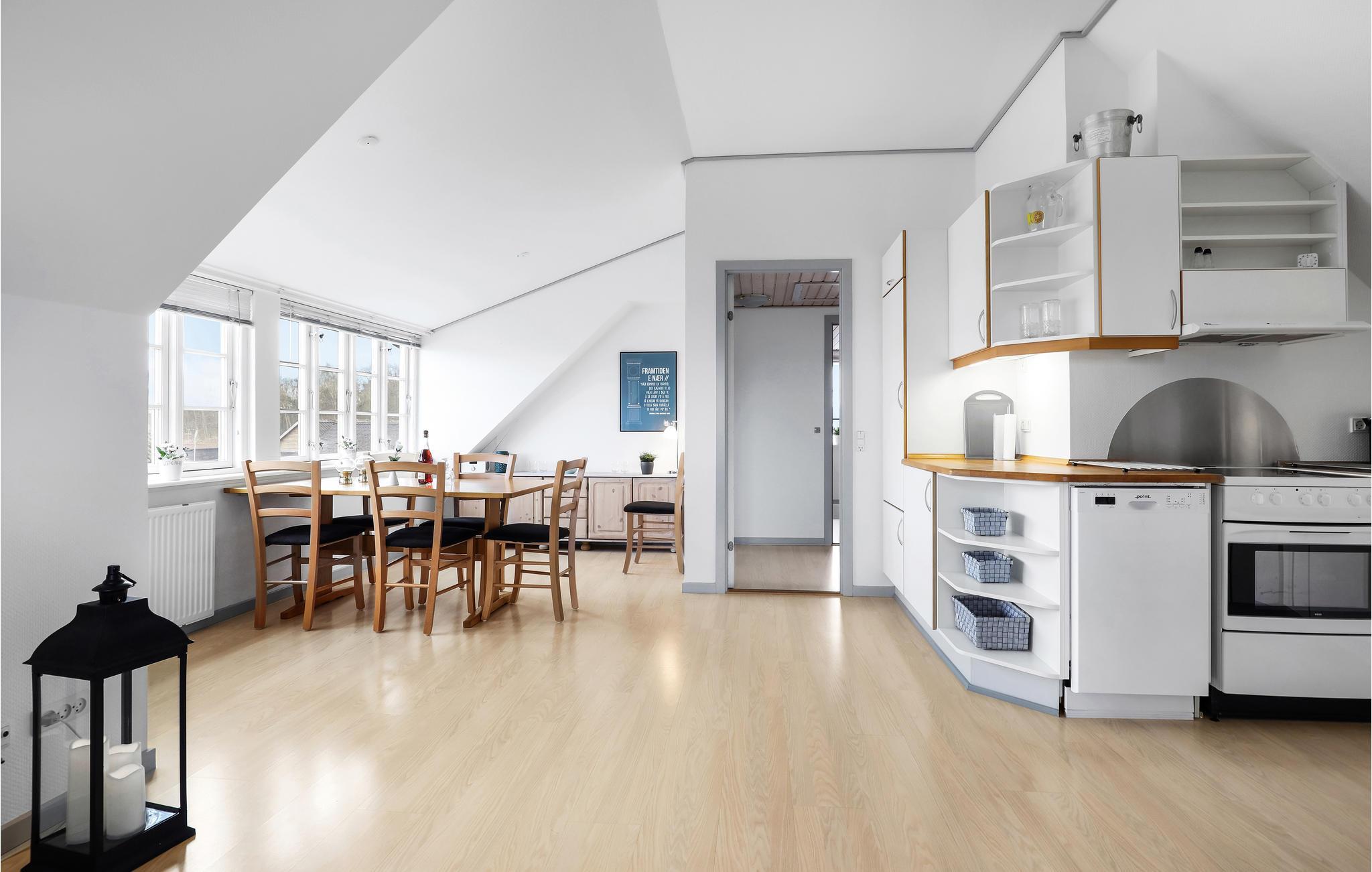 Lys og veludstyret ferielejlighed i Snogebæk, kun 400 m fra sandstranden, perfekt til en afslappende familieferie.