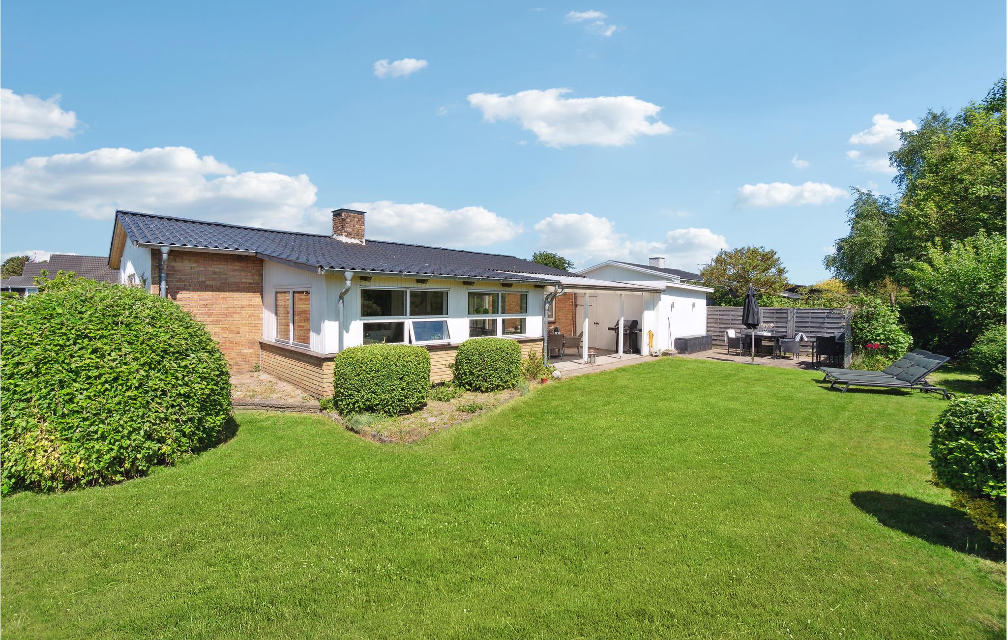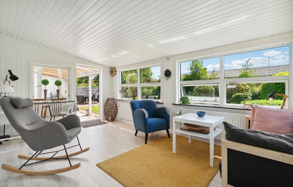I kommer til at tilbringe mange gode stunder i den rummelige og lyse opholdsstue, hvor I kan flade ud og se fjernsyn og om vinteren lytte til flammernes knitren i brændeovnen. I finder også en spiseplads i stuen. I husets store, åbne og veludstyrede køkken kan I være i gang med at lave mad mange på én gang. Den dejlige havestue er det perfekte sted at trække ind, når det bliver køligt at sidde ude om aftenen. Derudover består huset af tre gode soveværelser, et fint badeværelse og et bryggers med vaskemaskine og fryser (egen indgang).