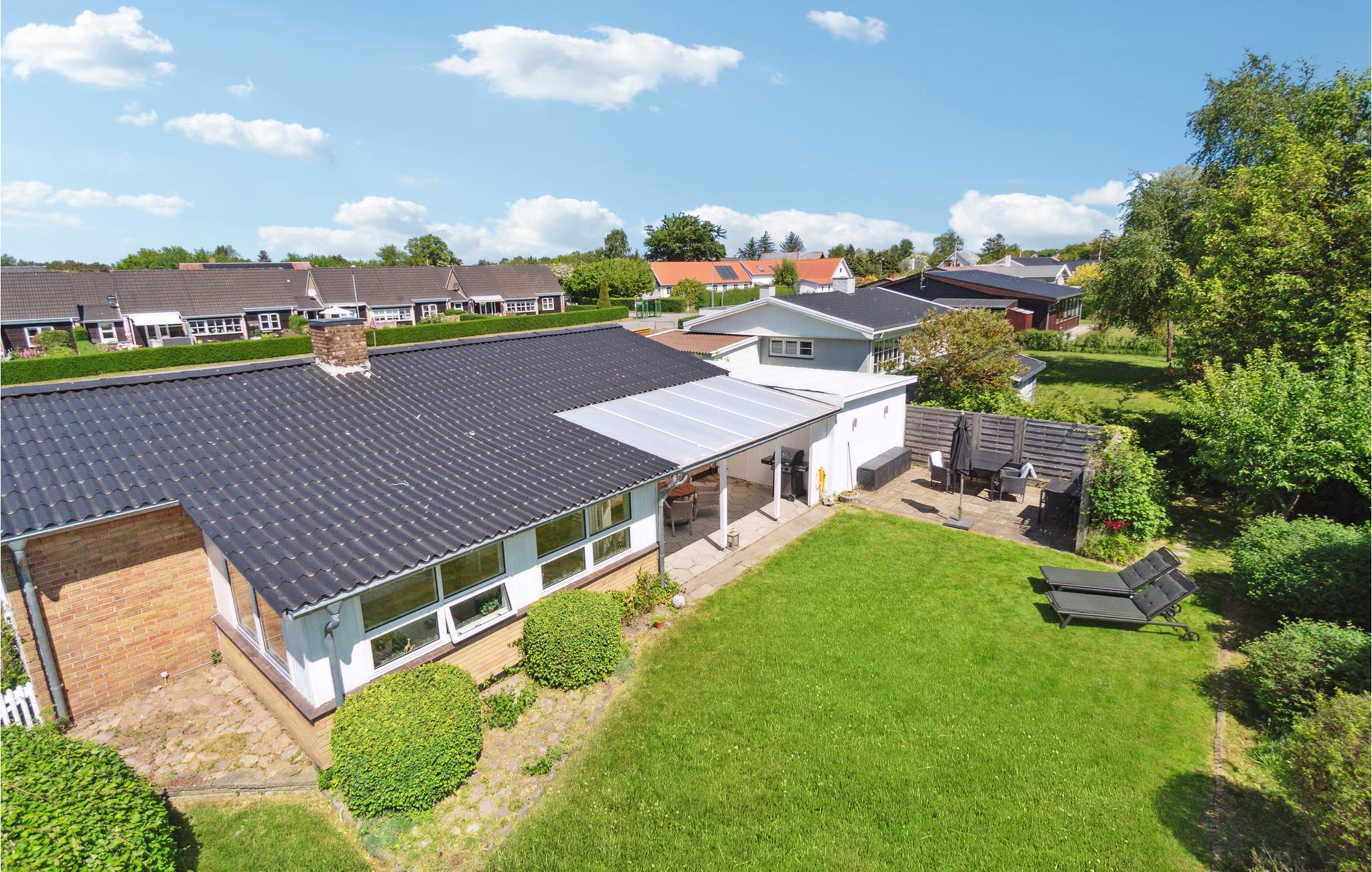 Hyggeligt feriehus i Snogebæk med overdækket terrasse og kun 600 m til sandstrand, perfekt til afslapning og familieferie.