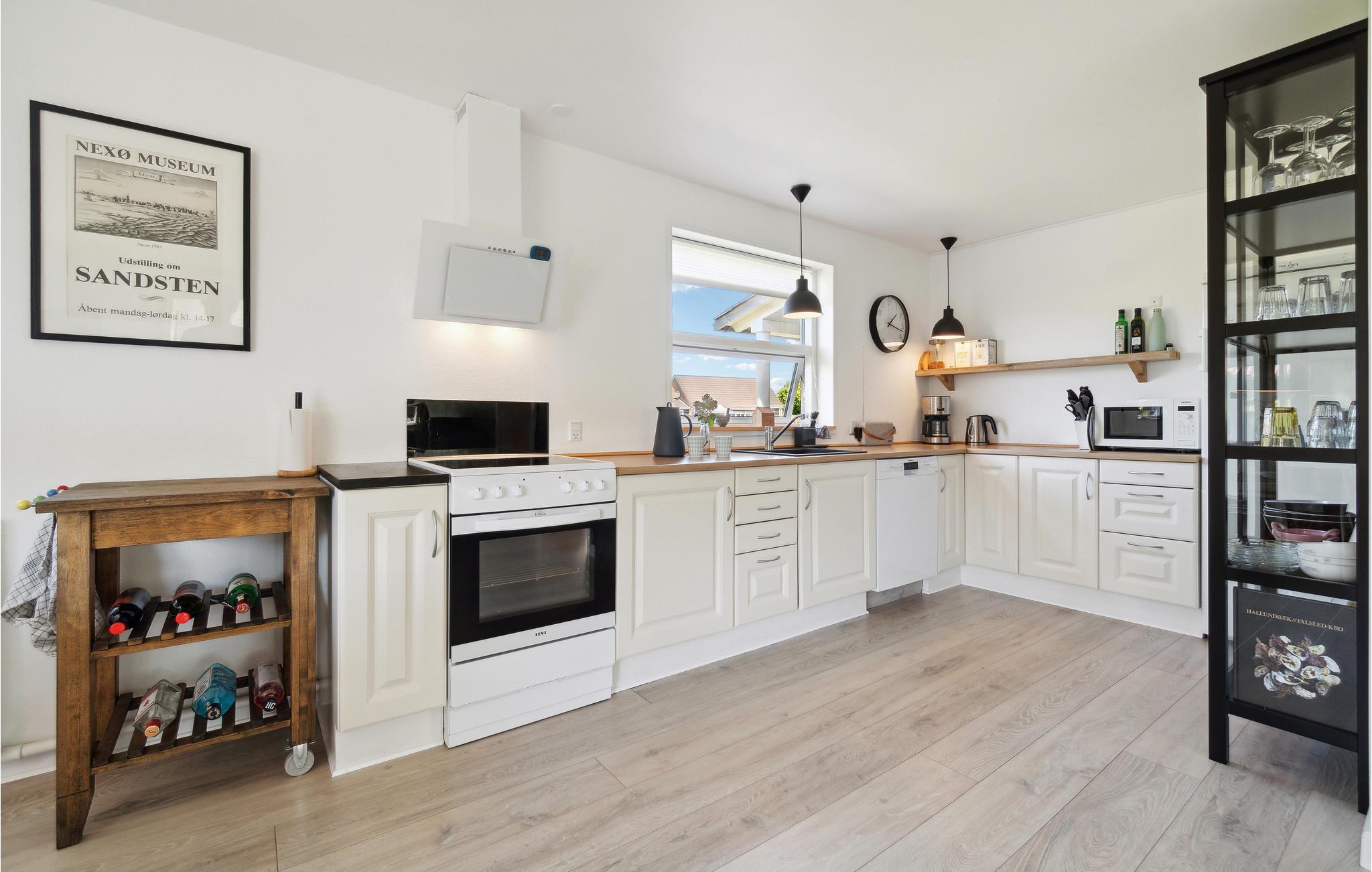 I bor nær charmerende Snogebæks gode restauranter, fine indkøs- og shoppingmuligheder mm. En kort gåtur fører jer til stranden, hvor I kan tilbringe mange skønne timer med at sole jer og bade. Hvis I ønsker afveksling, kan I prøve at til Dueoddes populære sandstrand. I kan også tage nordpå langs kysten og besøge hyggelige Nexø eller Svaneke. Attraktionen Rokkestenen er også inden for overskuelig afstand.