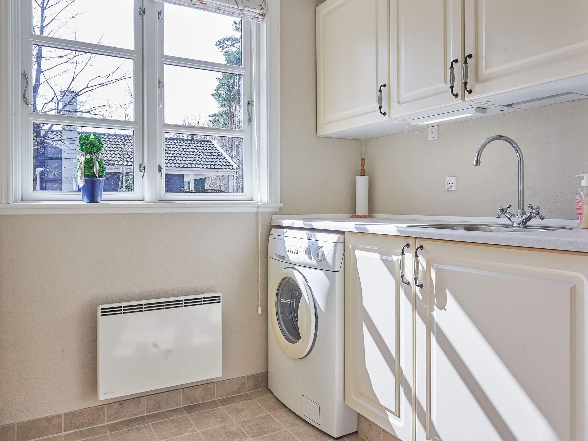 Huset rummer praktisk entré og bryggers med håndvask og vaskemaskine. Herfra har du adgang til et badeværelse med boblebad, perfekt til afslapning efter en aktiv dag. Det åbne køkken og opholdsstue er boligens hjerte, der byder på et lyst, veludstyret køkken, et spisehjørne og en hyggelig stue. En brændeovn og en energirigtig varmepumpe giver varme og komfort, mens de store vinduespartier giver dig mulighed for at nyde den omkringliggende natur.