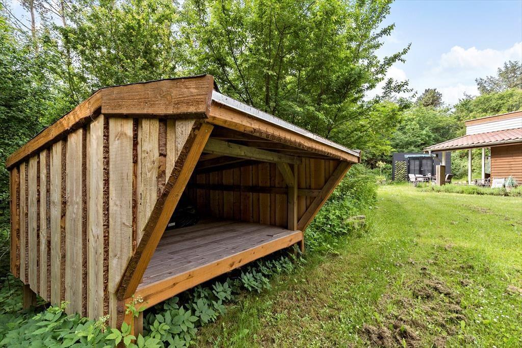 Grunden er plan omkring huset, så der kan fint laves sjove udendørsaktiviteter. Der er også et dejligt shelter, som børnene kan lege i – du kan sove udendørs i de varme sommernætter eller du kan hygge med de andre, hvis vejret driller lidt. Der er terrasser både overdækket og åbne, så afhængig af vejret kan alle mand sidde og hygge sig udenfor. Hvis du er hardcore udemenneske er der også udekøkken, så ved hjælpe af grillen kan der laves megen god mad til glæde for alle som er med.