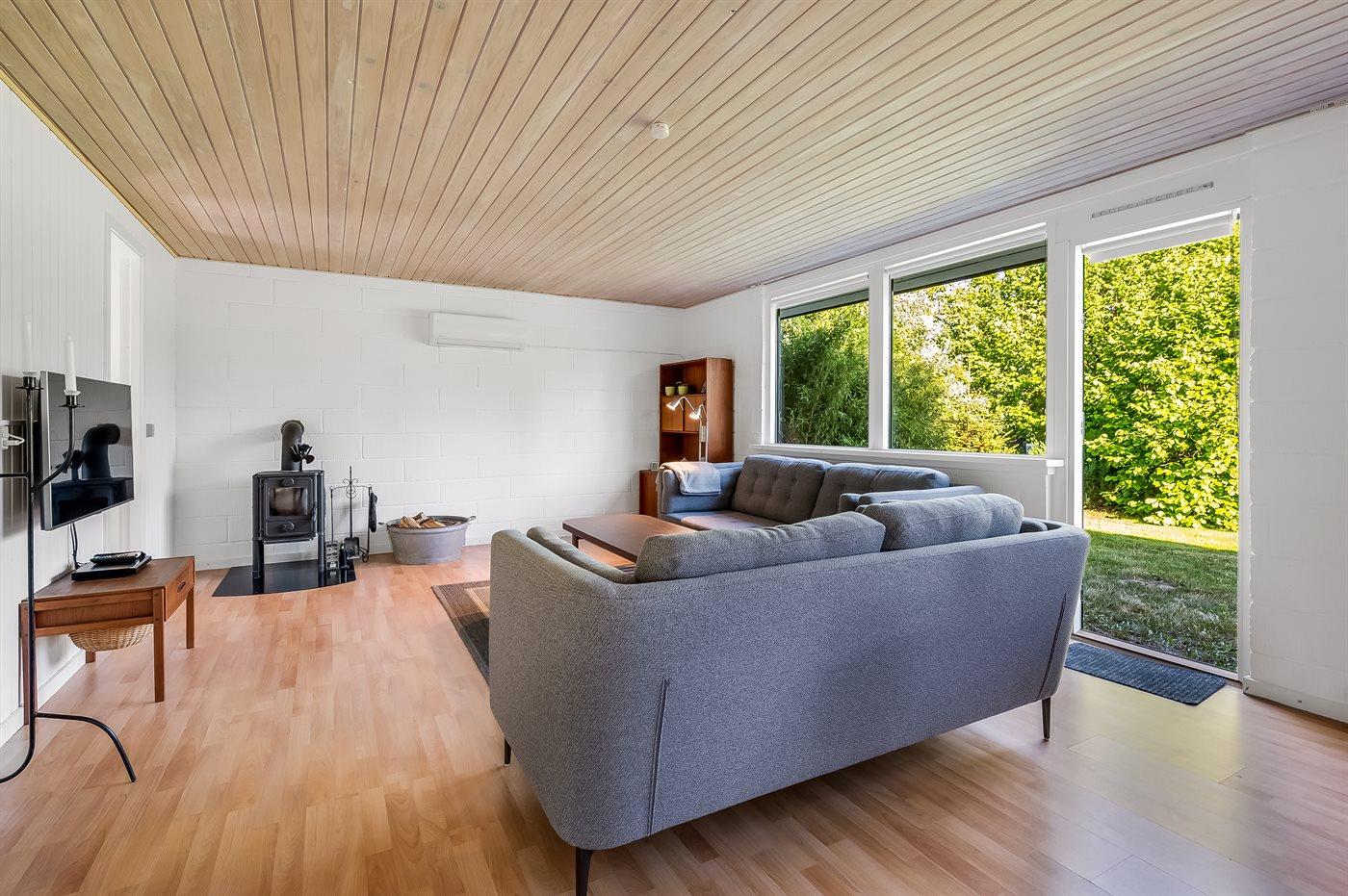 Hyggeligt sommerhus ved Kattegats kyst i Store Sjørup med stor grund, udestue og tæt på børnevenlig strand.