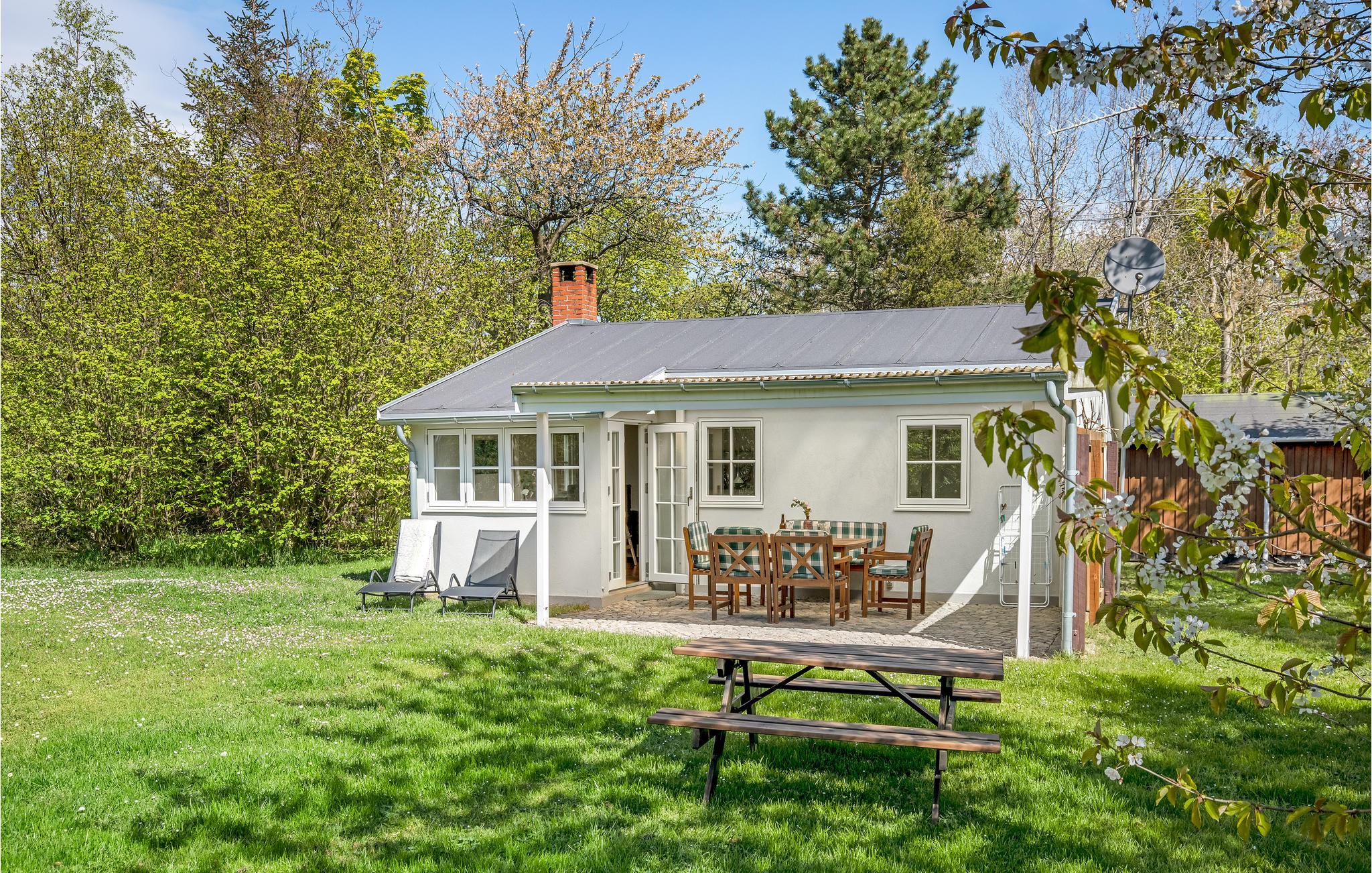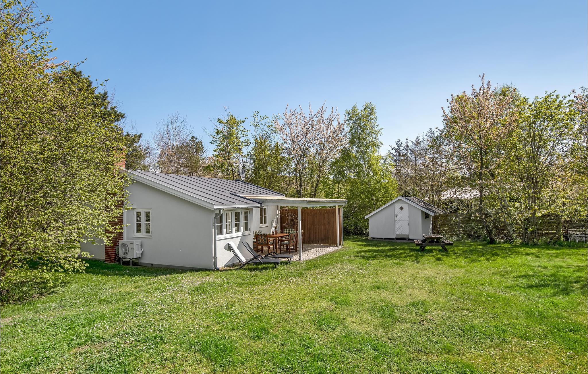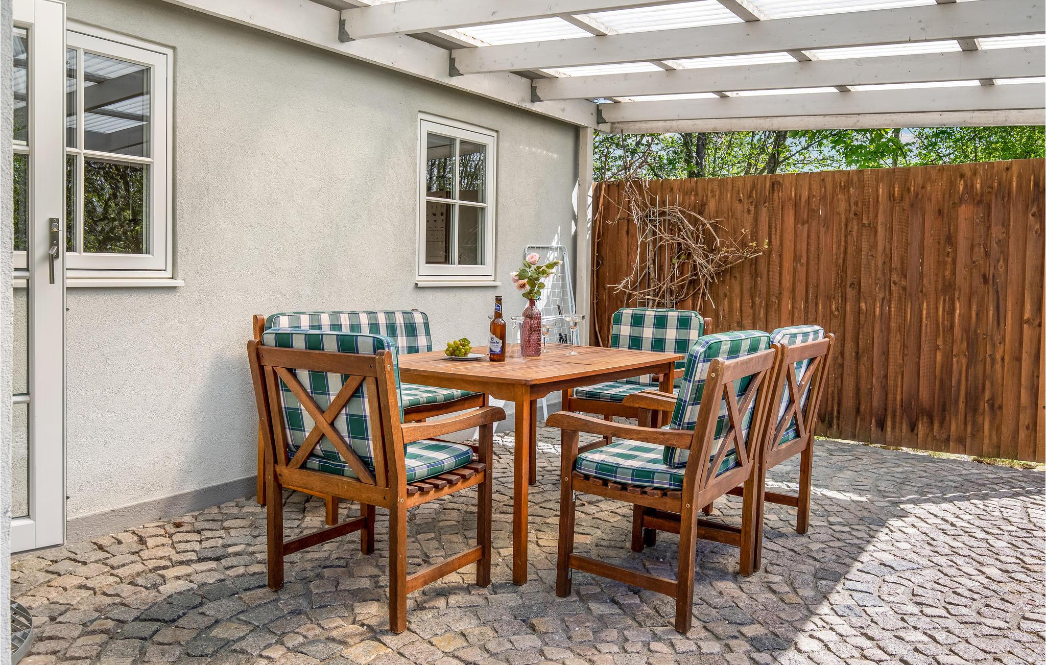 Charmerende sommerhus tæt på børnevenlig strand i Stampen med brændeovn og solrig terrasse.