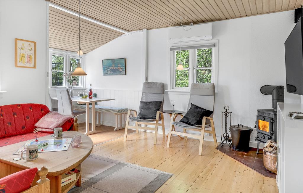 Charmerende, velindrettet sommerhus beliggende på en dejlig grund i det populære område kaldet Stampen, og med kun 500 m til fredelig og børnevenlig flot sandstrand. Husets stue er indrettet med spisebord med udsigt mod haven og hyggeligt sofahjørne vendt mod brændeovn med glaslåge.