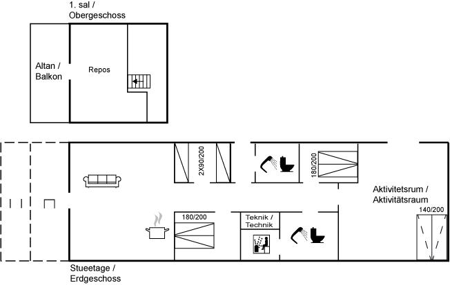 Bemærk: To af sovepladserne er placeret i husets aktivitetsrum.