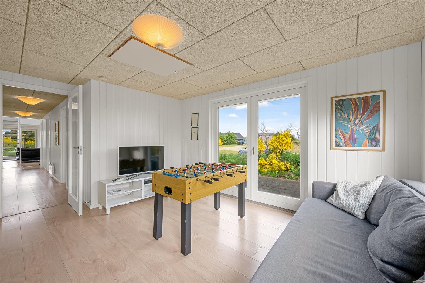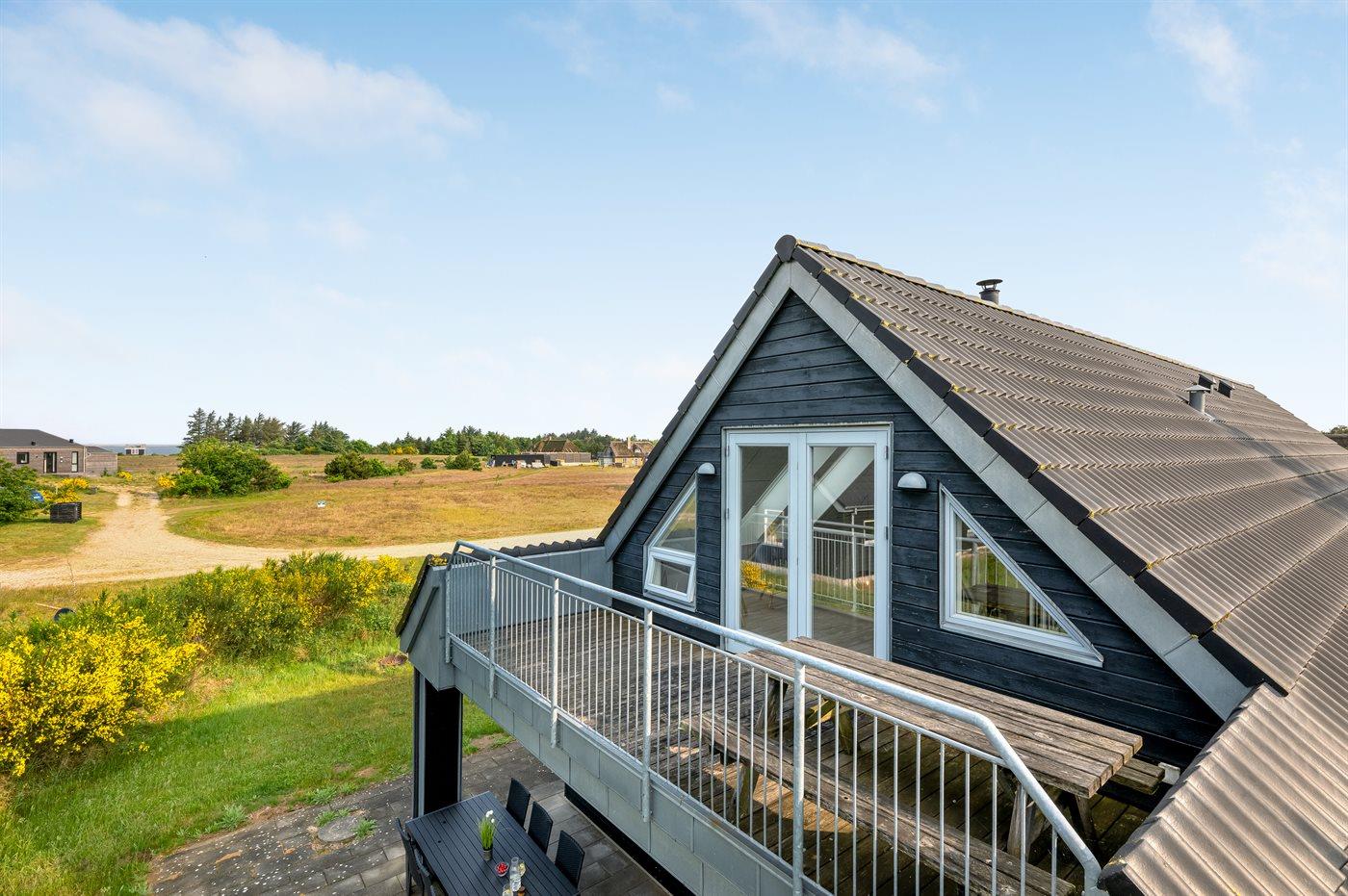 Charmerende sommerhus tæt på Ringkøbing Fjord med aktivitetsrum og stor altan med udsigt.