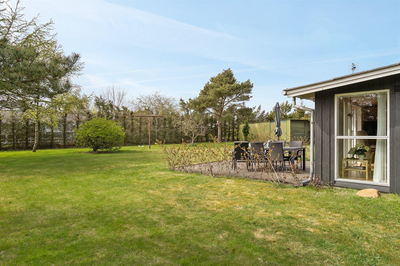 Ferieboligen er beliggende på en 1199 m² stor naturgrund. Der er 25000 m til havet. Der er 350 m til fjorden. Nærmeste forretning er beliggende i en afstand af 800 m. Der er en golfbane i en afstand af 7000 m. Til ferieboligen hører 40 m² terrasseareal. Ligeledes er der adgang til udestue. Gynge. Parkering ved ferieboligen.