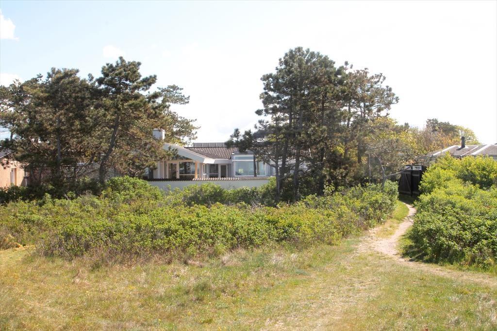 Nyd livet udenfor: Fra stue/opholdsrummet er der to udgange til en delvist overdækket træterrasse. Slap af med en god bog på terrassen eller tag en frisk dukkert ved stranden. Huset er nemlig placeret på dejlig grund med en sti direkte ned til stranden, så der er rig mulighed for at nyde strandlivet, den afslappende atmosfære og naturen omkring.