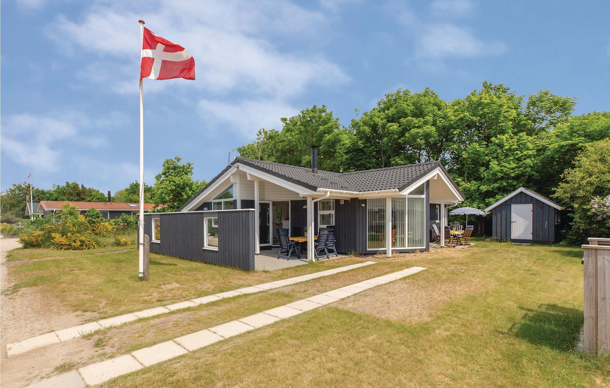 Dejligt feriehus med åbent køkken i åben kombination med spisestue/stue med brændeovn, udgang fra stuen til skøn både overdække og åben terrasse hvor solen kan nydes i fulde drag, og der om aftenen kan tænde op i grillen. Endvidere indeholder huset badeværelse med brus, samt 3 værelser, yderligere overnatning muligt i alkove i stuen. Huset er beliggende tæt på kysten, nNår I står ude på vejen kan I skimte vandet.