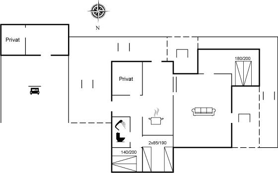 Der er i alt 3 soveværelser. Sovepladserne fordeler sig på: 4 sovepladser i dobbeltsenge. 2 sovepladser i enkeltsenge. Derudover er der 1 stk. barneseng.