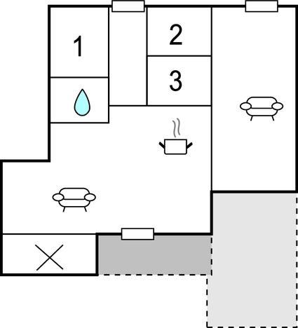 Huset har en dejlig overdækket terrasse med havemøbler og en stor udestue, så I kan nyde naturen i ethvert vejr. Takket være den store græsplæne er der gode muligheder for leg og boldspil for børnene.