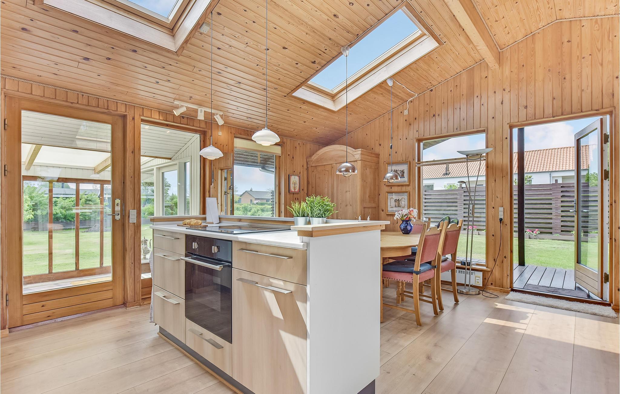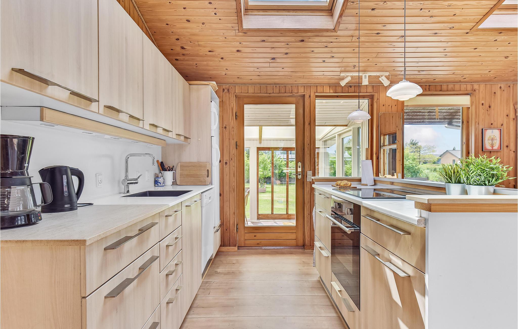 Dette smukke sommerhus ligger på en naturgrund i et roligt sommerhusområde. Huset har 3 soveværelser med 6 senge. Der er et åbent køkken, som ligger i forlængelse af spisestuen og stuen.