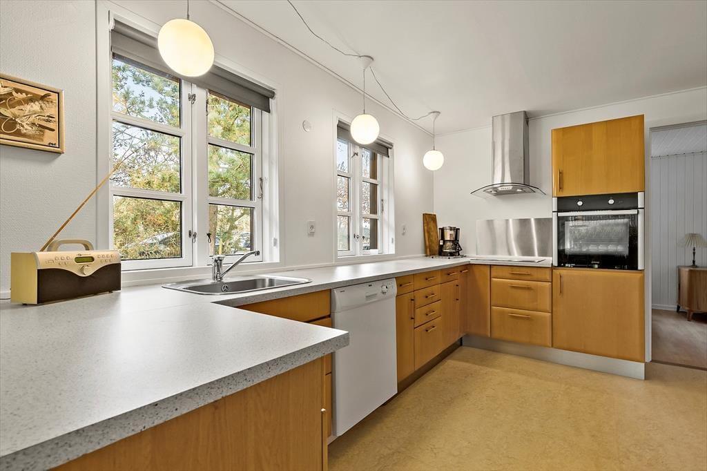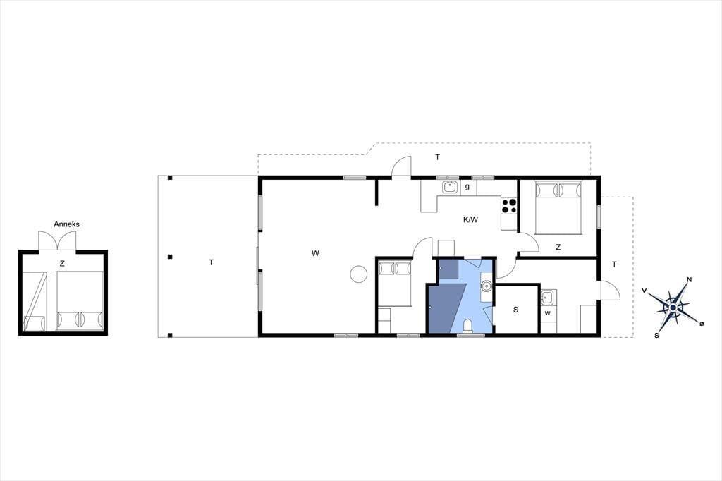 Velkommen indenfor til bindingsværksidyl og se frem til en herlig ferie i et sommerhus, hvor pladsen er helt rigtig fordelt og hvor praktik går hånd i hånd med ægte dansk hygge. Træd ind i et dejligt og veludstyret køkken, hvorfra du kan tilgå alle husets rum. Til den ene side har du en skøn stue, hvor du kan samle familien omkring spisebordet og lægge planer for dagen over morgenmaden eller tage en dyst i et af husets spil. Du kan også nyde brændeovnens varme knitren, læse historie for børnene og se en god film på Tv’et i dagligstuegemakkerne. Fra stuen er der dør til overdækket terrasse, så hvad med at tage kaffen med ud og nyd den indre ro, mens børnene boltrer sig på græsplænen. Fra køkkenet er der adgang til 2 dejlige soveværelser med dobbeltsenge, bryggers med vaskemaskine og plads til barnevognen samt dejligt badeværelse med spa og sauna. Det er da hygge og praktik i skøn forening. Herudover anneks med dobbeltseng og køjeseng. Her er radiator, men annekset er mest brugbart forår, sommer og efterår.