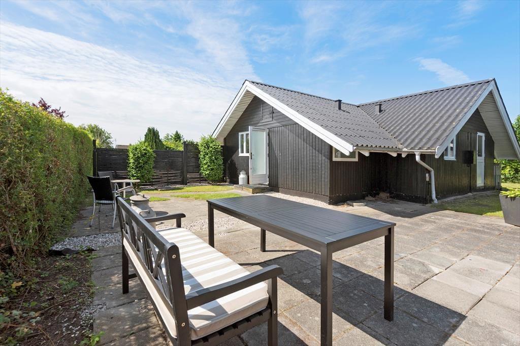 Foran huset er der en dejlig fliseterrasse, hvor I kan sidde næsten ugenert og spise dagens måltider. Haven er godt beplantet og her er rig mulighed for at ungerne kan boltre sig. På bagsiden af huset er der en dejlig gårdsplads med læ og herfra kan du komme til annekset og til et lille skur som er indrettet med 2 stole, så man kan sidde og ryge ugenert. Fra huset har I kun 250 meter til stranden og masser af naturoplevelser.