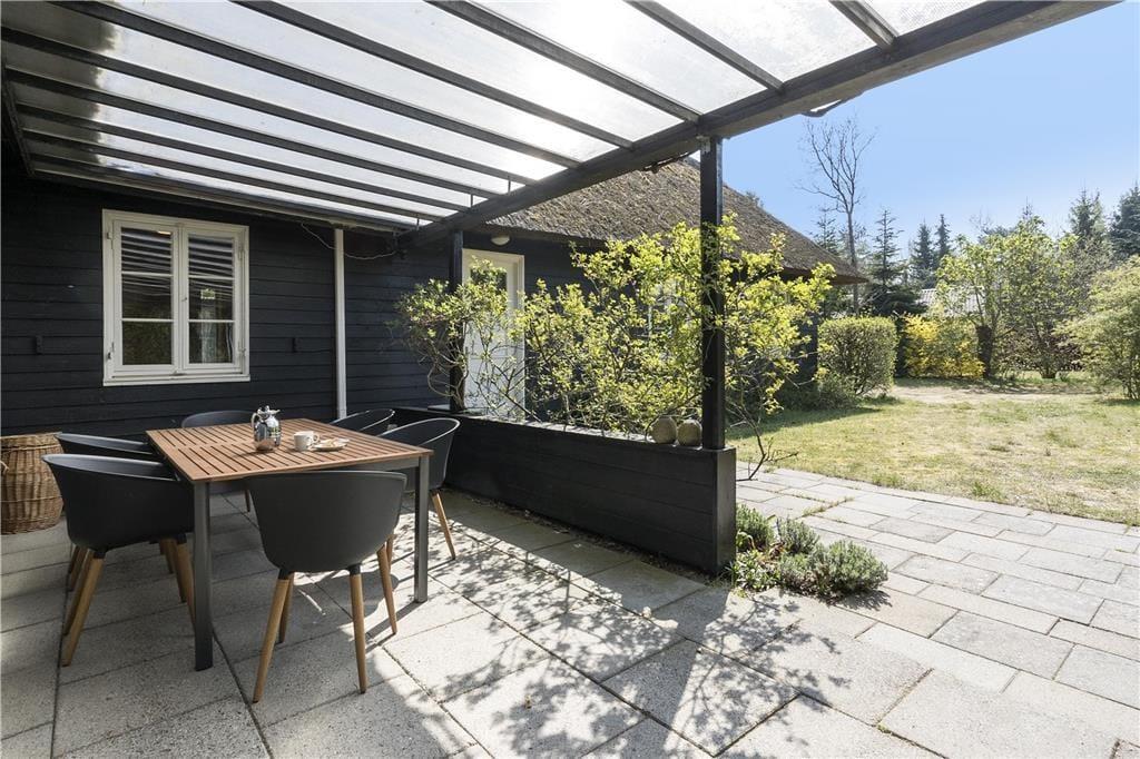 Udenfor nyder man godt af husets placering i et skovagtigt sommerhusområde. Husets store grund er holdt meget naturlig for at tiltrække et rigt dyreliv inklusiv rådyr, fasaner og spætter. Ud over spisepladsen på terrassen er der også en spiseplads ved et langbord med bænke med den skønneste udsigt ned til vandet.