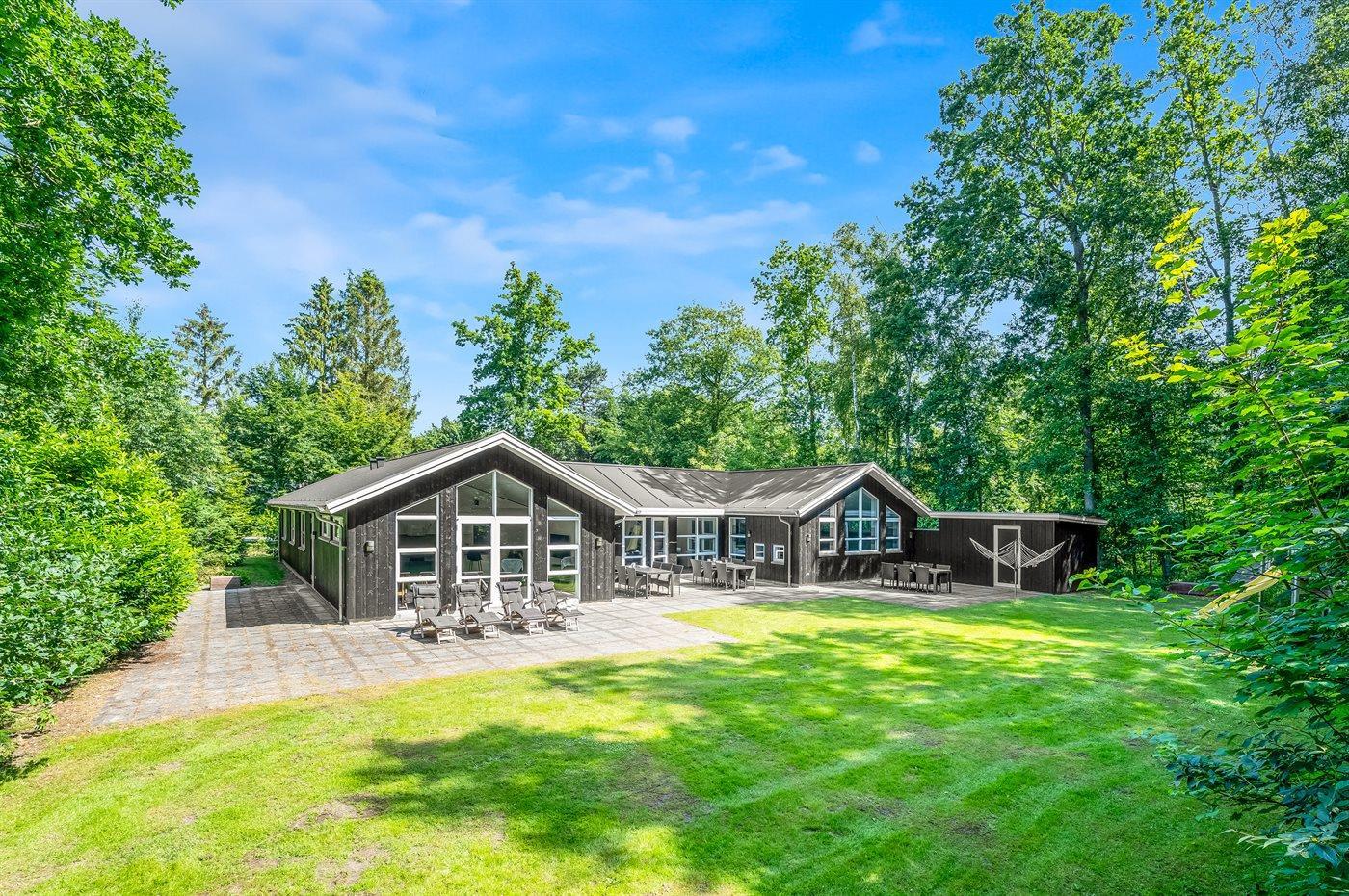 Til børnene er der indrettet naturlegeplads foran den store terrasse med til grill og hygge. I kan også være heldige og møde råvildt i haven, da grunden grænser op til skoven.