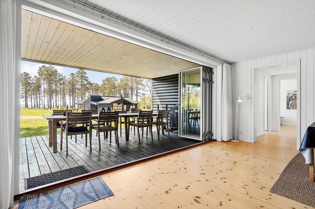 Når du træder ind i huset, bliver du mødt af et lyst og åbent opholdsrum, hvor stue, køkken og spiseområde smelter sammen til ét hyggeligt og funktionelt fællesrum. Store vinduer lukker naturen og havudsigten helt ind og skaber en rolig og behagelig stemning. Huset har fire soveværelser med i alt ni sovepladser: