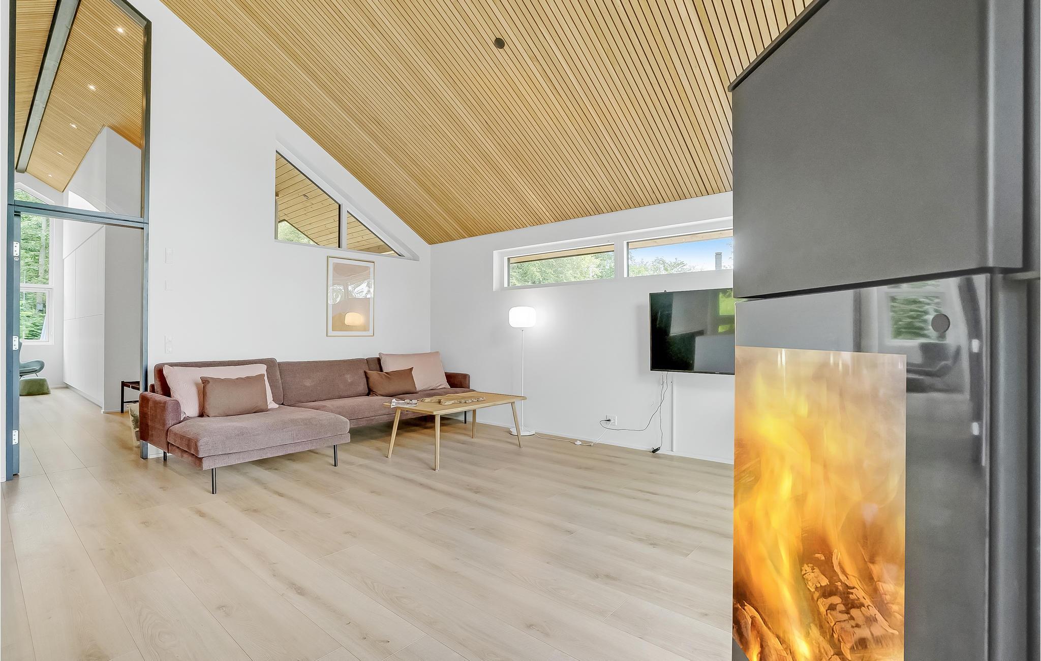 Vandsportsentusiaster og lystfiskere ser hurtigt, at dette feriehus er det ideelle sted til en ferie fuld af aktiviteter i, omkring og på vandet. Det moderne og hyggelige feriehus tilbyder sine gæster en vidunderlig udsigt over søen. Sæt jer godt til rette ved brændeovnen på køligere eftermiddage og nyd den knitrende ild.
