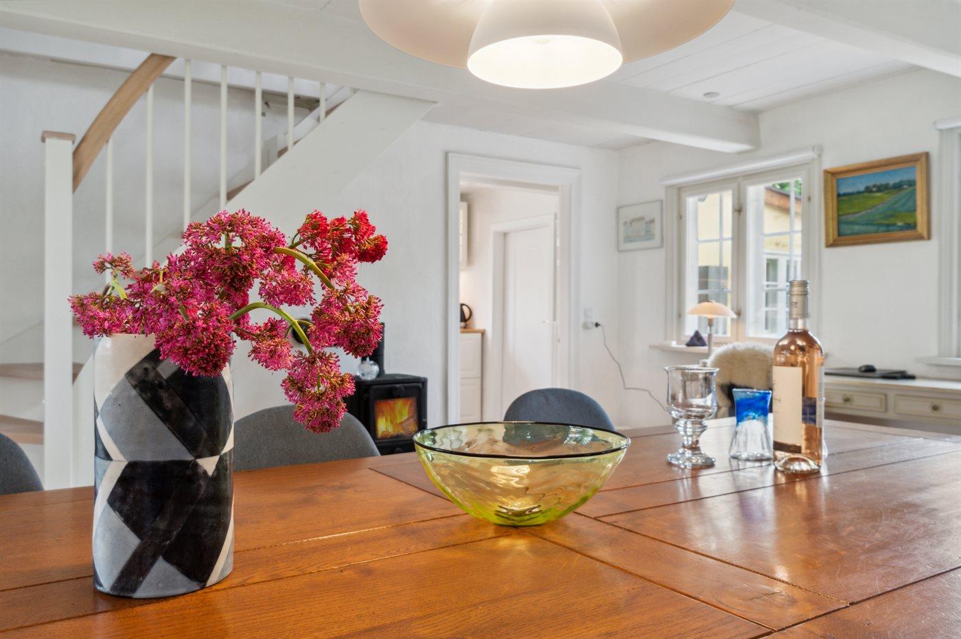 Feriehuset er i 2024 blevet gennemgående renoveret og fremstår pænt og moderne i indretningen. Huset er i to plan med soveværelser på 1. sal. Fra gavlvinduet i det store soveværelse er der en flot udsigt ud over byen og havet. Da alt er holdt i afdæmpede hvide farver suppleret med lyse afhøvlede gulve, så føler man sig virkelig godt tilpas i huset. Der er desuden klinkegulve med gulvvarme.