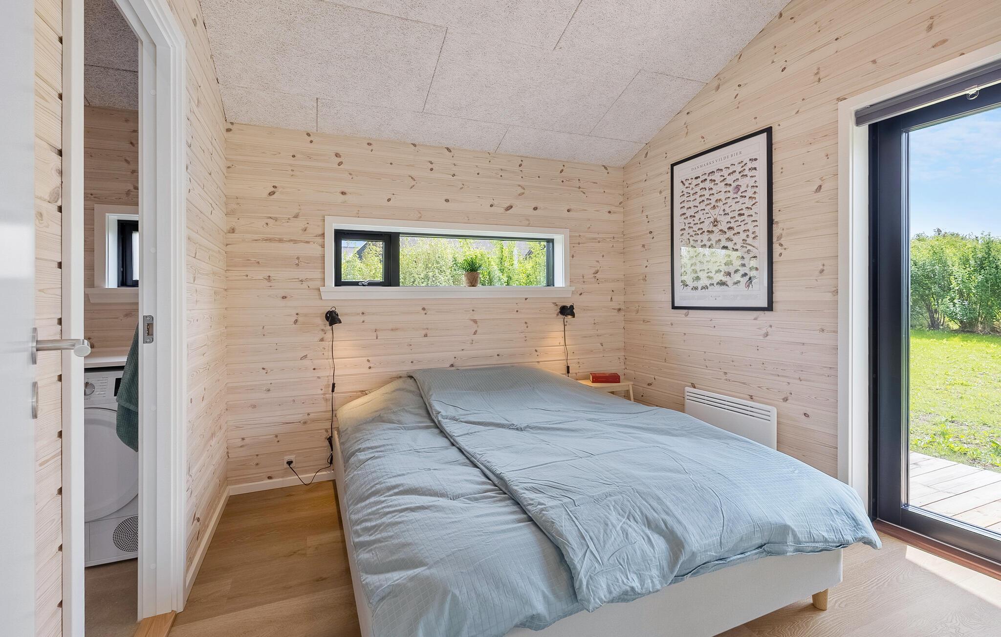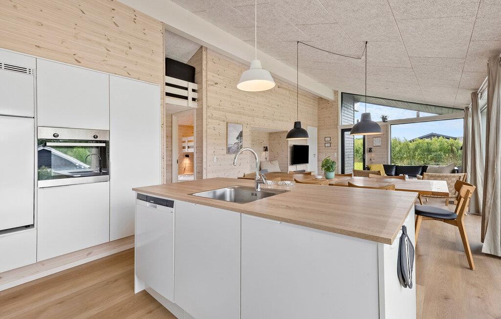 Velkommen til dette velholdte sommerhus, hvor varme træelementer, et moderne design og velvalgte møbler skaber en hyggelig stemning. Glæd jer til at lave mad sammen i det åbne køkken og til hyggelige måltider ved det stilfuldt oplyste spisebord med udsigt til haven. Smag jer sammen med en bog i det hyggelige læsehjørne eller sæt jer godt til rette i sofaen til en spilleaften.