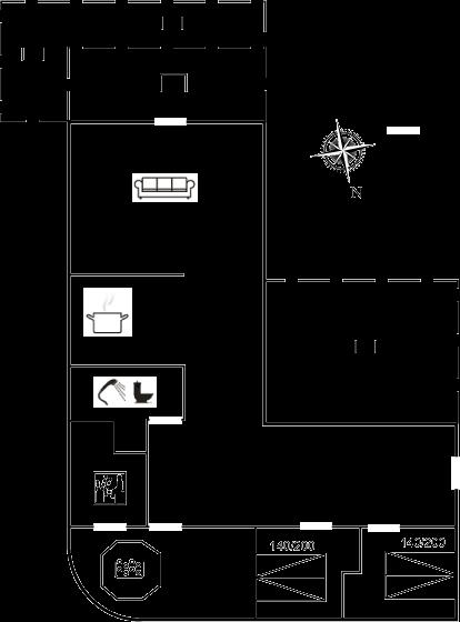 Køkkenet er udstyret med 1 køleskab. Der er 4 elkogeplader, varmluftovn, mikrobølgeovn samt opvaskemaskine.