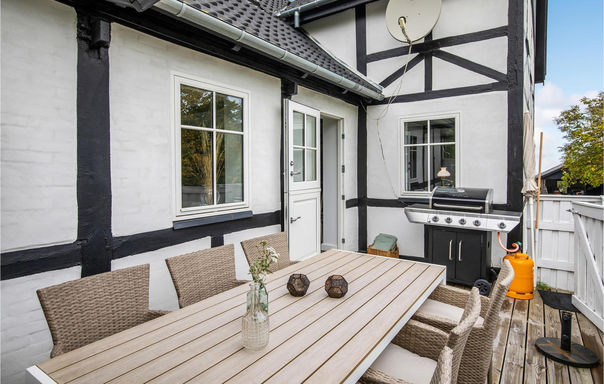 Rummeligt bindingsværkshus med havudsigt og stor terrasse i Tejn, perfekt til familier og naturoplevelser.