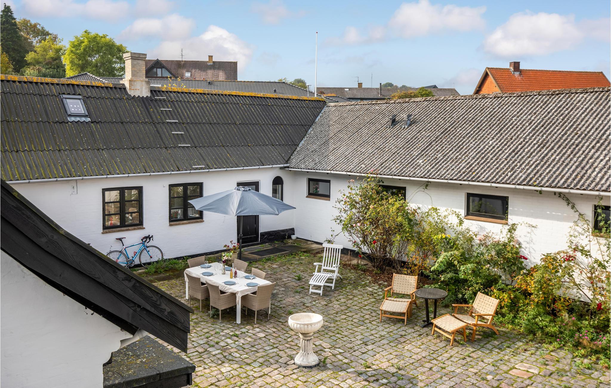Dette store feriehus ligger i den hyggelige havneby Tejn. Beliggende i en tidligere gård, kombinerer feriehuset et lyst, komfortabelt interiør med en afslappet, autentisk atmosfære. Det byder på masser af plads og er ideelt til flere familier. Glæd jer til hyggelige måltider ved spisebordet og afslappede aftener foran brændeovnen. I kan også nyde tiden på terrassen, hvor I kan tilbringe dovne eftermiddage og hyggelige sommeraftener. På den store fælles naturgrund vil jeres børn finde masser af plads til at lege og måske møde nye legekammerater.