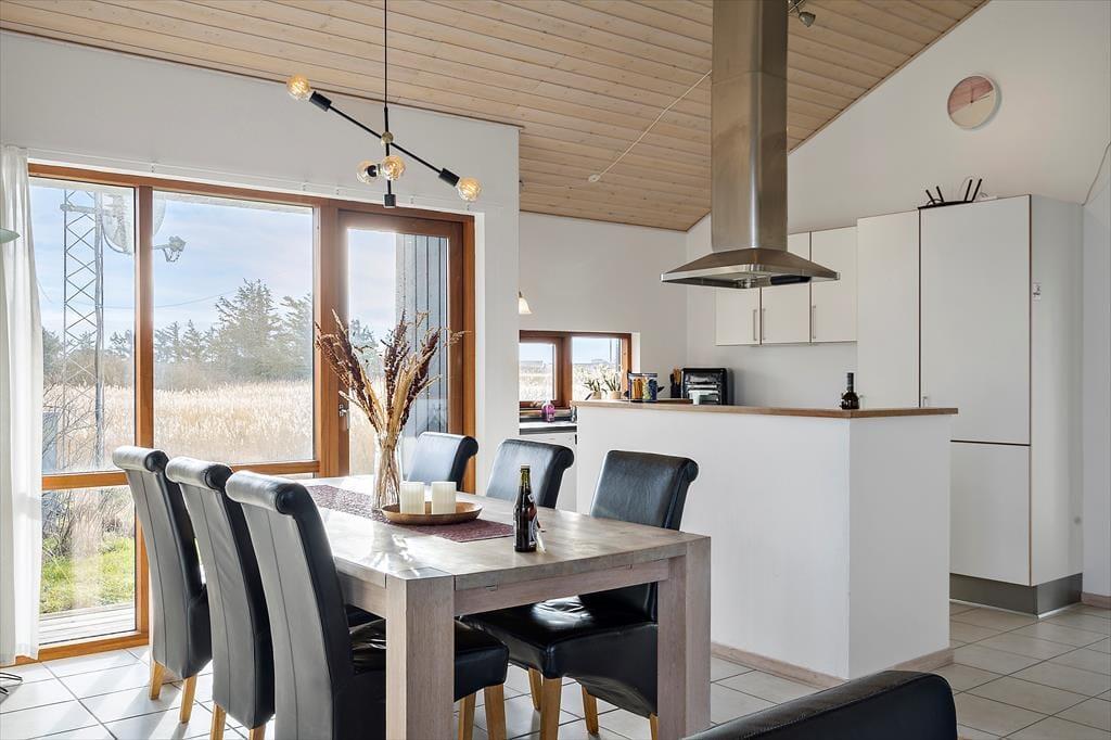 Start morgenen stille og roligt på den store træterrasse – med frisk kaffe og udsigt ud over landskabet og mod Nissum Fjord. Står I tidligt op, kan I fange solens første stråler og opleve det rige fugleliv og naturen, der breder sig omkring jer. Når aftenen falder på, skifter himlen farve, og I kan læne jer tilbage og nyde roen. Selvom I ikke kan gå direkte til fjorden fra grunden, får I stadig masser af udsyn og naturoplevelser lige udenfor døren.