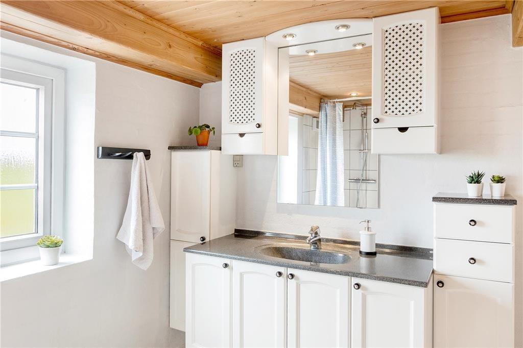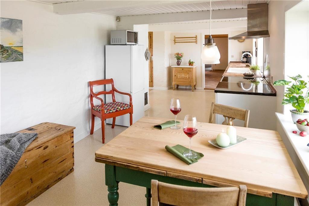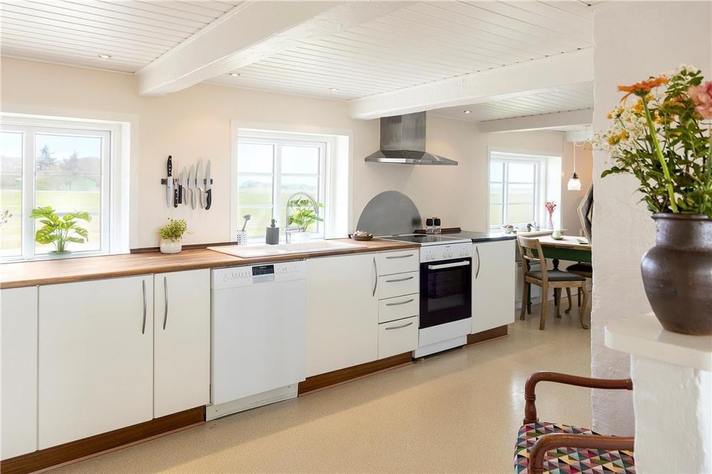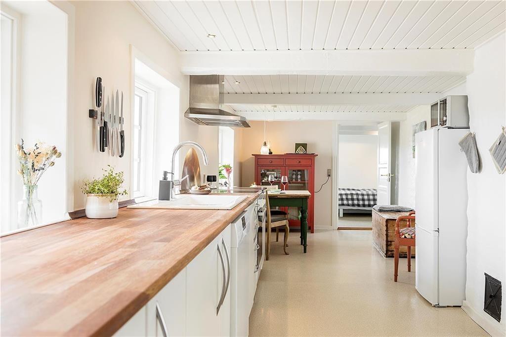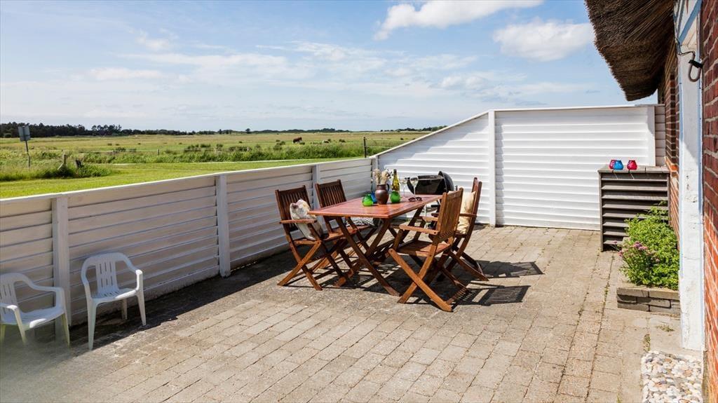 Bondehuset har stået i den nordlige ende af Rømø i mere end to århundreder. Arkitekturen er da også ganske klassisk med med stråtag, sprossevinduer og en flot dekoreret hoveddør, mens loftshøjden inden døre er på cirka 1,80 meter. Og samtidig fremgår det tydeligt af den flotte stand, at huset er blevet renoveret og opdateret med sikker hånd. Lyse farvetoner og pænt møblement præger alle husets rum, der inkluderer tre soveværelser, et bryggers med vaskefaciliteter og et velindrettet badeværelse med gulvvarme. Køkkenet er på hyggelig vis indrettet med spiseplads, og når I ikke tilbringer tiden her, kan I rykke ind i den tilstødende stue, hvor I kan spille Playstation, se film eller bare nyde brændeovnens varme og en stille stund i sofaen.