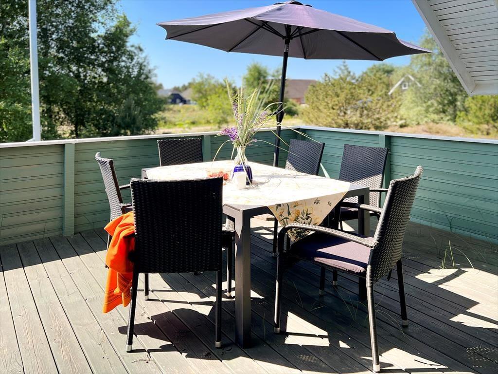 Uanset om dagsprogrammet står på afslapning eller udflugter, kan I starte med at spise morgenmad på den østvendte terrasse. Ønsker I bare at fortsætte driverlivet, kan I senere på dagen rykke hen på den sydvendte terrasse, som er stor, delvist overdækket og helt aflukket.