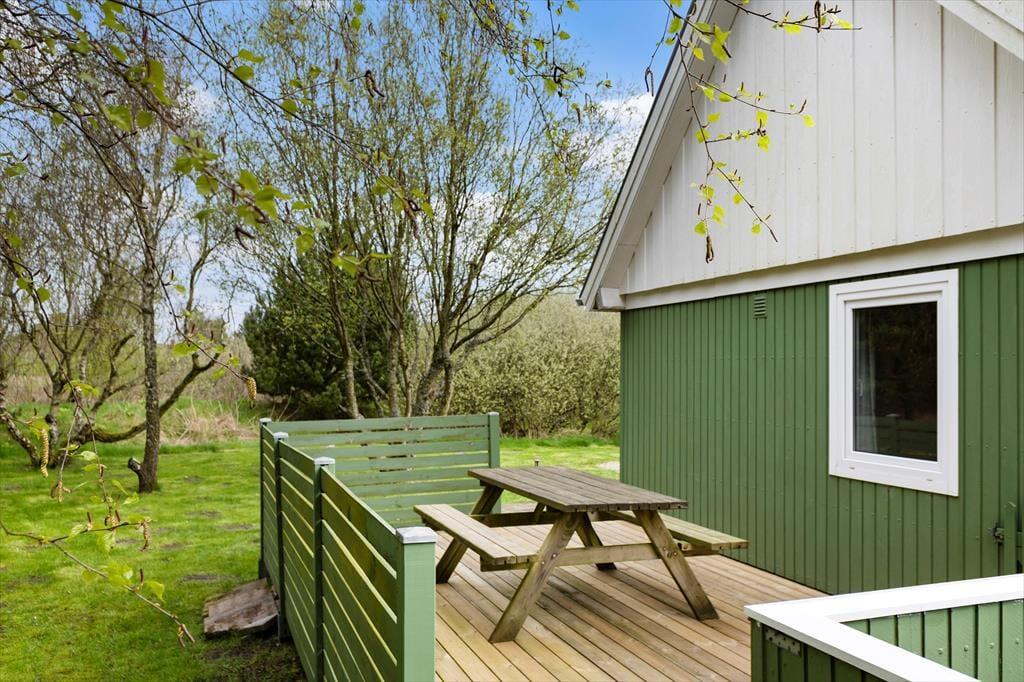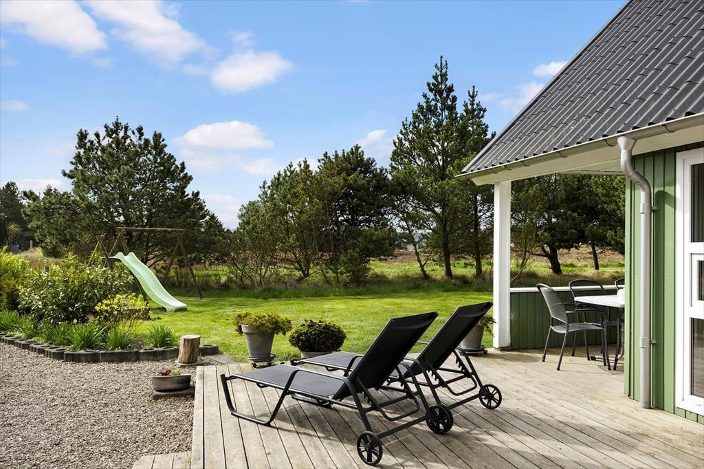 Omkring huset er der flere terrasser at vælge imellem, så uanset om du vil drikke morgenkaffe i solen, spise sommerfrokost i skyggen under halvtaget eller slutte dagen af med grill og gode samtaler i det gyldne lys, kan det fint lade sig gøre. Grunden er med sine 1518 m2 dejligt stor og godt afskærmet af træer og anden bevoksning. Der er både et legestativ og en sandkasse til de yngste feriegæster, og græsplænen inviterer til leg og boldspil for både børn og hunde – hvis du har en eller to hunde, du gerne vil have med på ferie, er de nemlig velkomne her i huset.