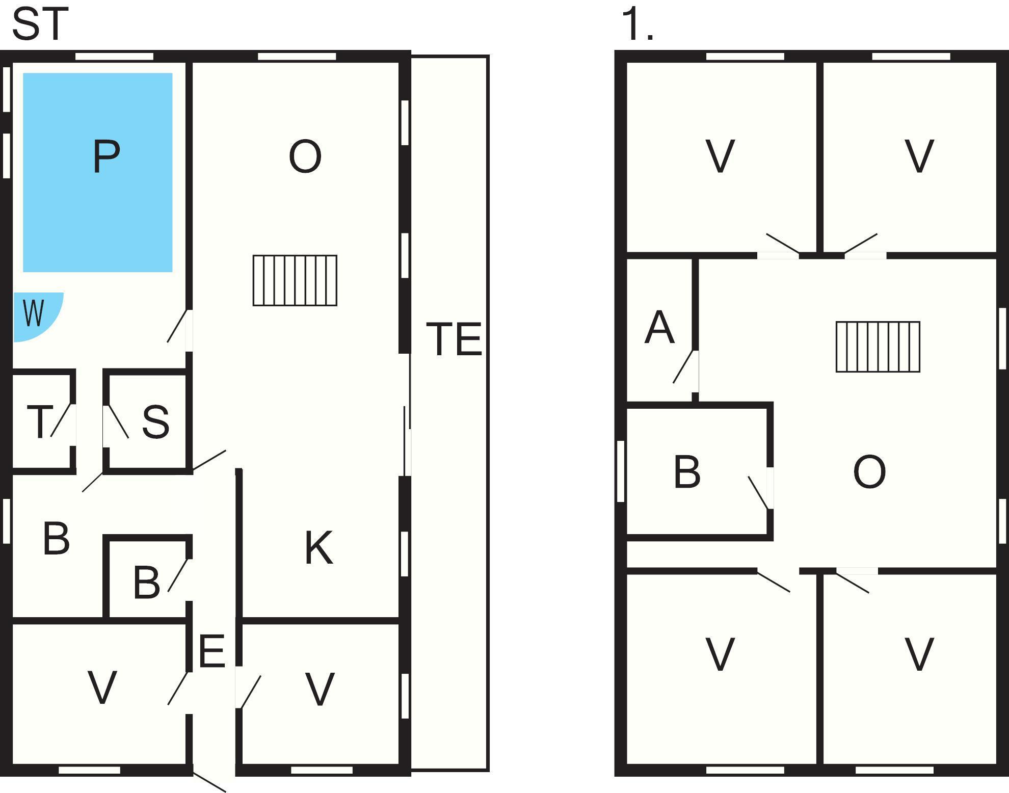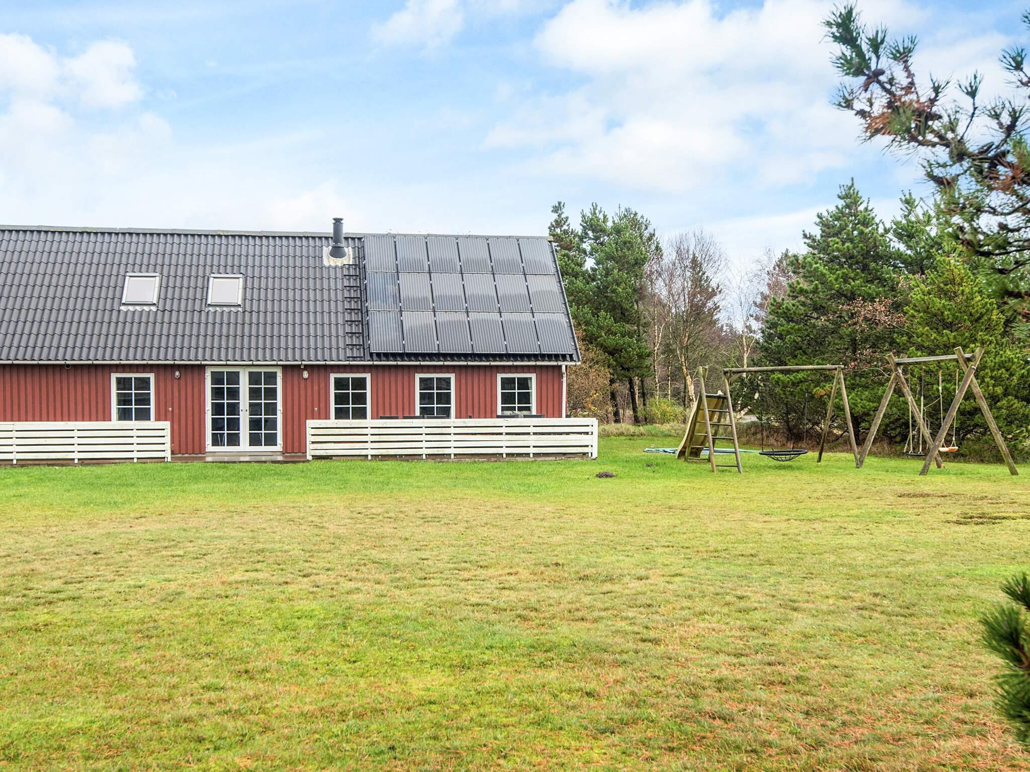 Udendørs er der en 50 m² store terrasse, hvor I kan grille eller bare slappe af og solbade. Her er også tænkt på børnene med gynger og rutchebane samt en nedgravet trampolin (benyttes på eget ansvar/forsikring). Der er lader til elbil. Gæster skal selv medbringe laderstik. 2 værelser på 1 sal har smart tv. De 2 værelser over poolen.