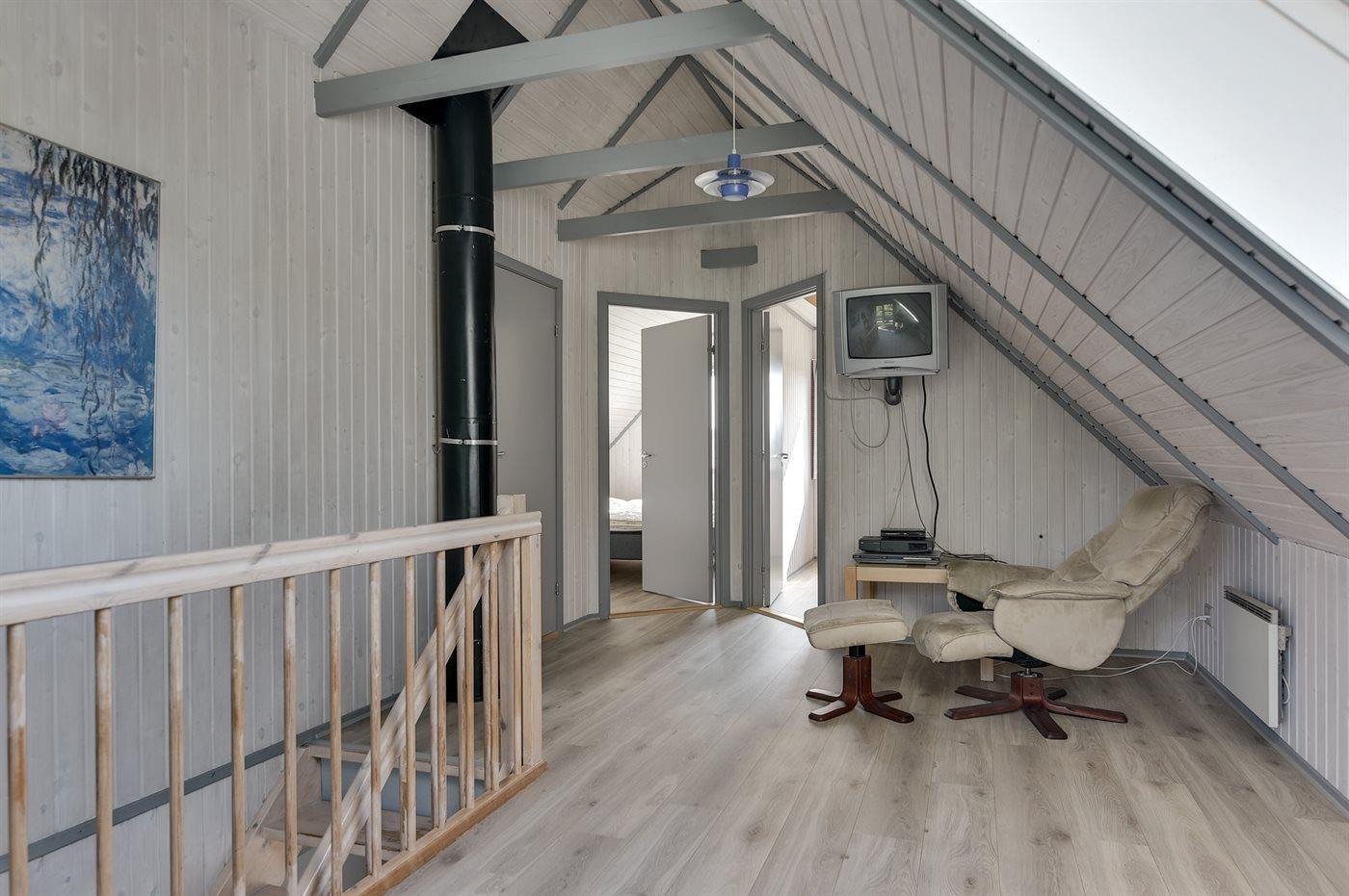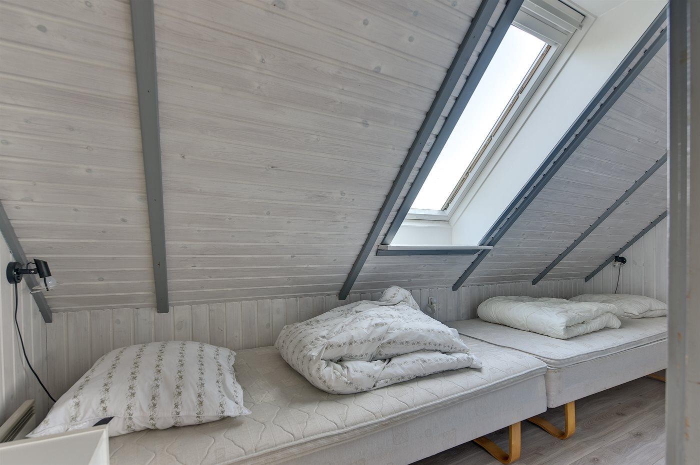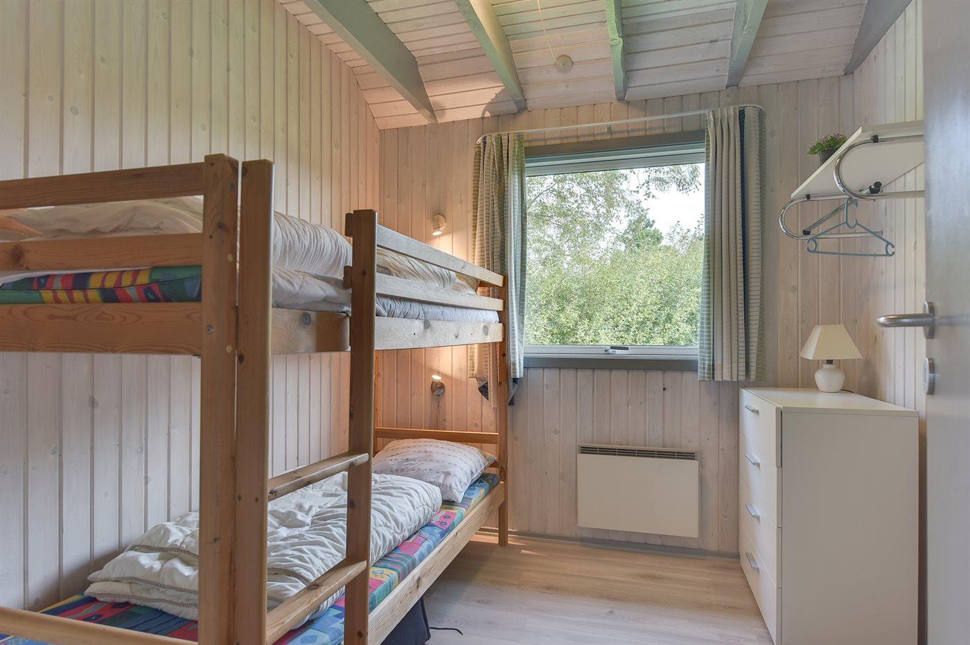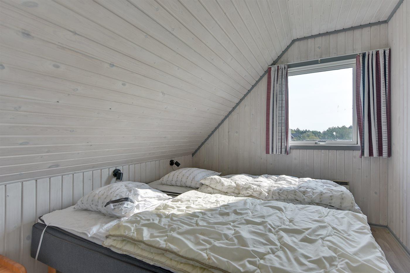 Der er i alt 5 soveværelser. Sovepladserne fordeler sig på: 6 sovepladser i dobbeltsenge. 2 sovepladser i enkeltsenge. 2 sovepladser i køjeseng. Derudover er der 1 stk. barneseng.