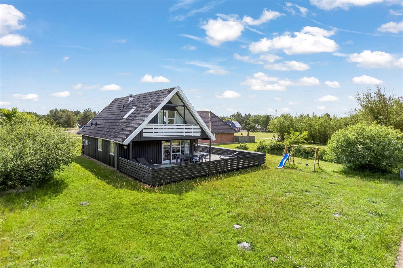 Ferieboligen er beliggende på en 1529 m² stor naturgrund. Der er 2800 m til havet. Nærmeste forretning er beliggende i en afstand af 3000 m. Der er en golfbane i en afstand af 9600 m. Til ferieboligen hører 110 m² terrasseareal. Desuden er der 20 m² overdækket terrasse. Der er redskabsrum. Gynge. Der er installeret stik til opladning af elbil.