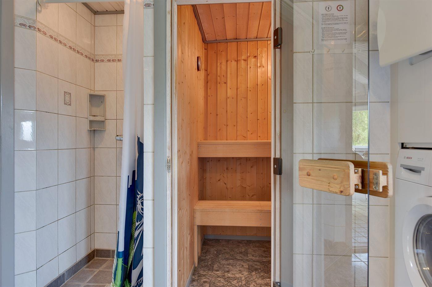 Der er 2 badeværelser med bruser og 2 toiletter I saunaen er der mulighed for afslapning.