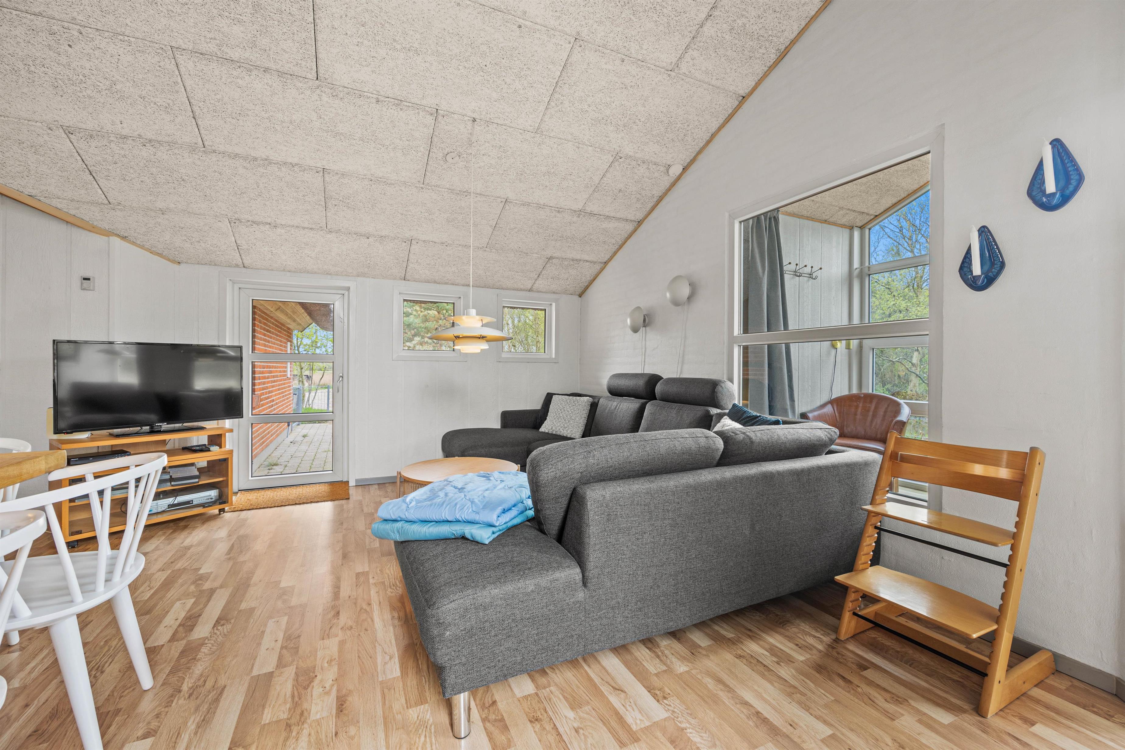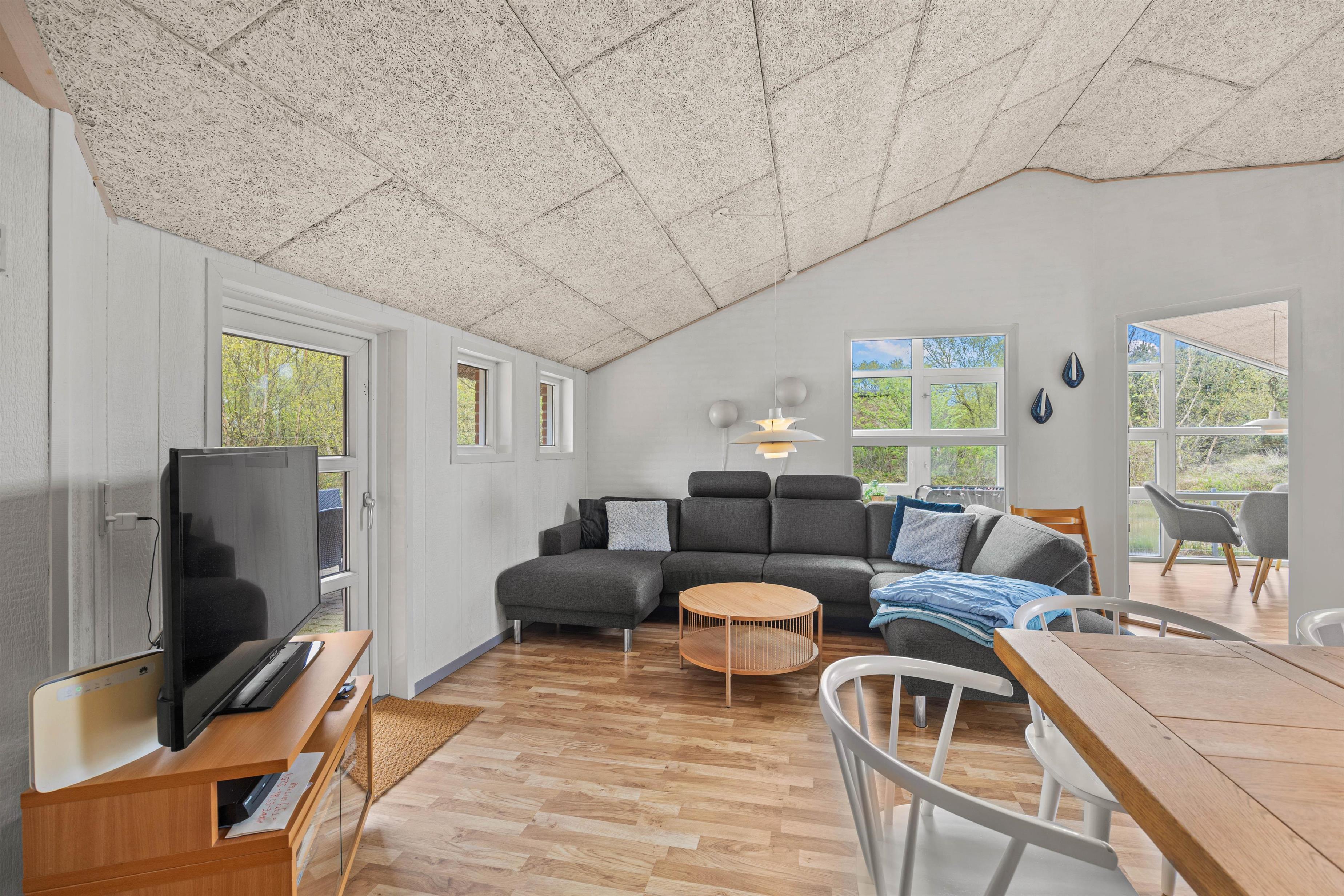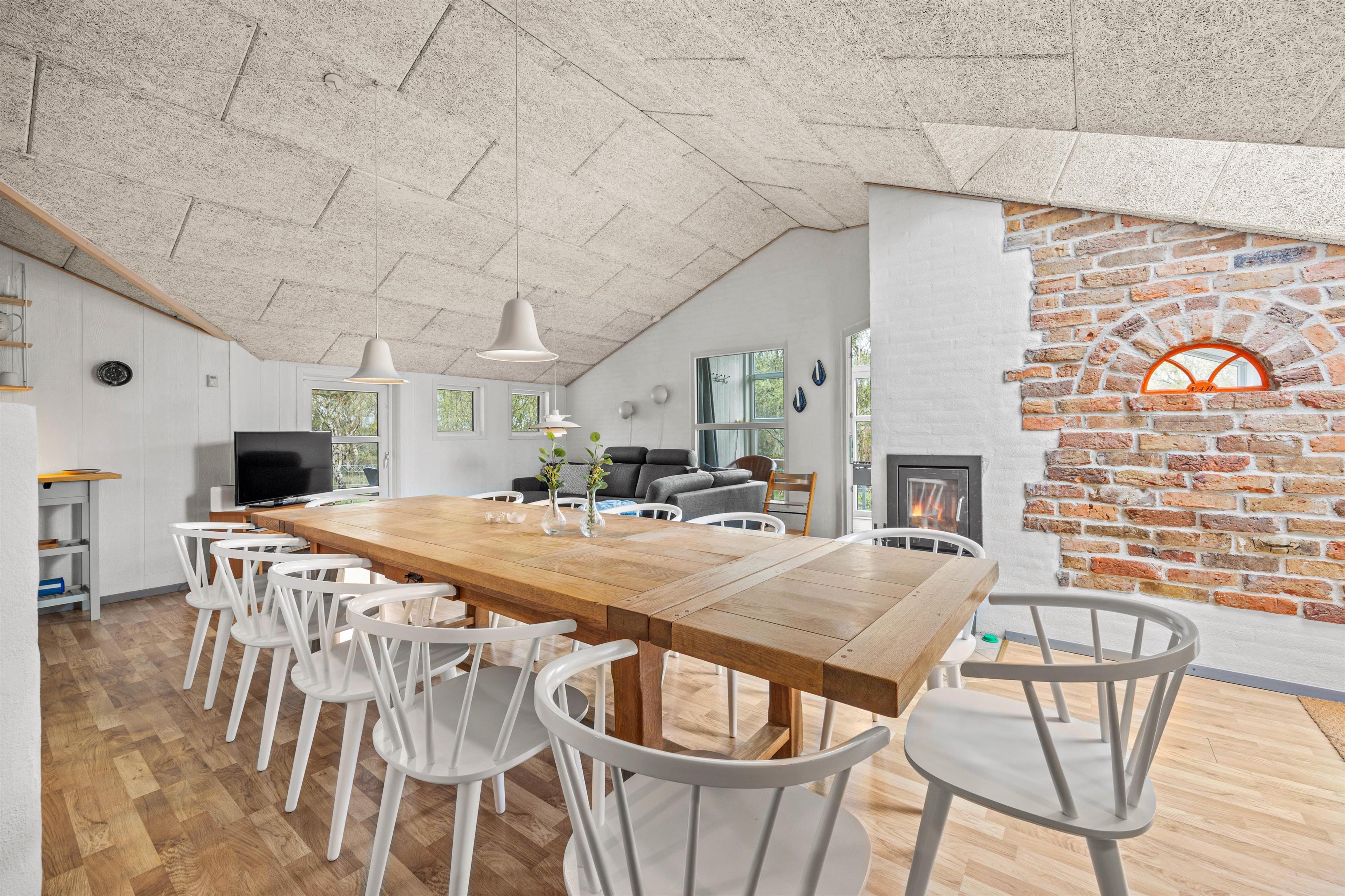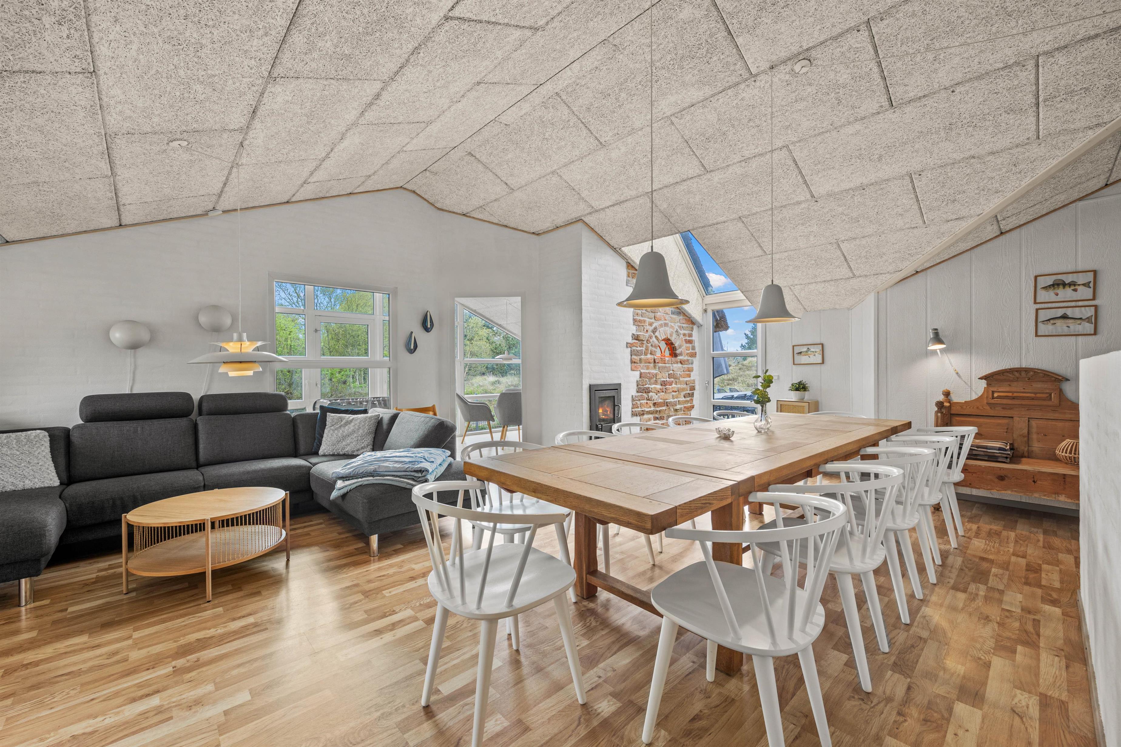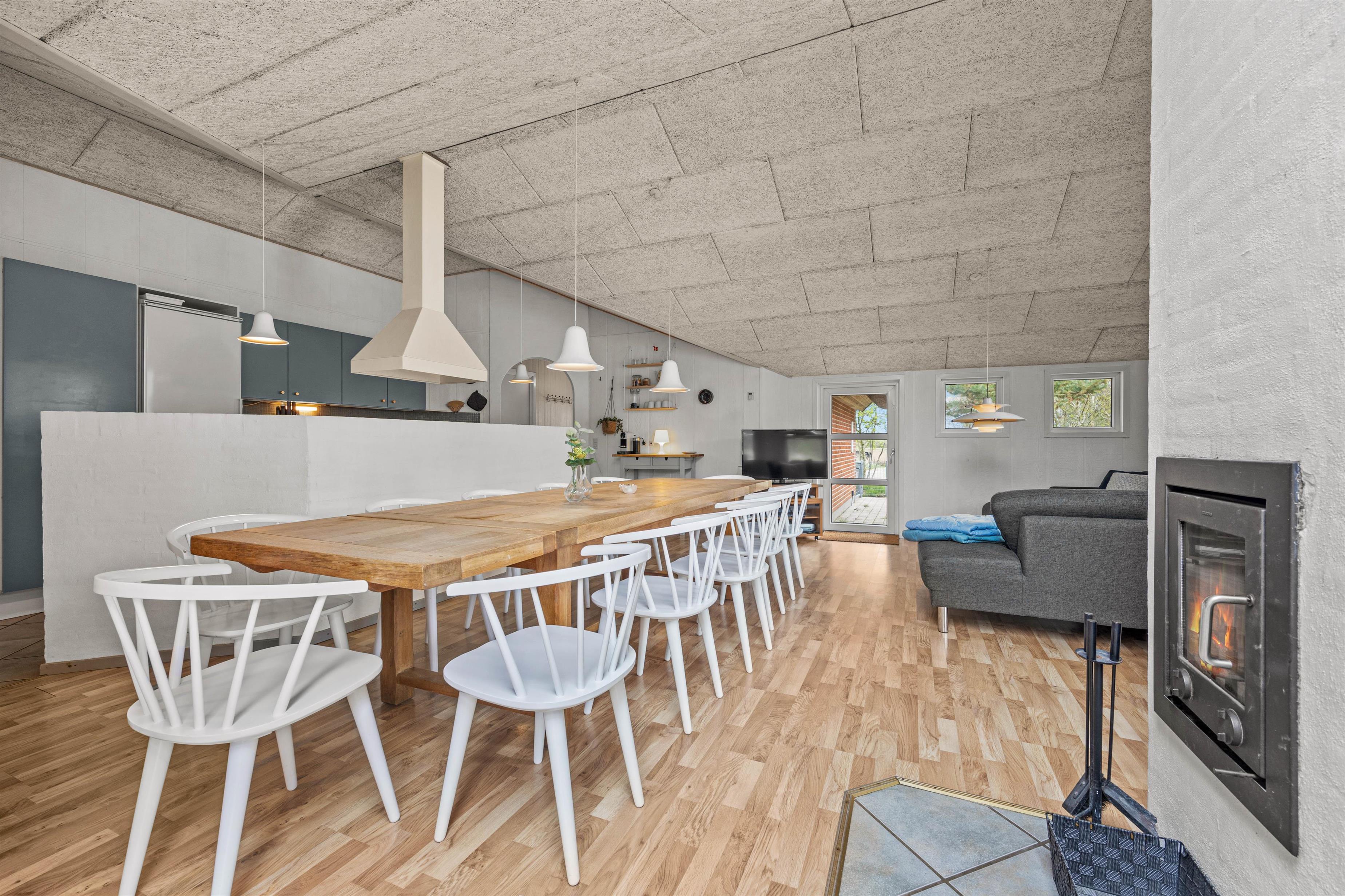 Når hele flokkens skal samles, kan det eksempelvis være i det store køkkenalrum, der forener stue, køkken og en skøn udestue. Her er rigeligt med siddepladser og loft til kip, hvilket skaber en rummelig og rar atmosfære. I det veludstyrede køkken kan laves lækker mad, mens børnene tegner omkring spisebordet. Efter mad klarer opvaskemaskine naturligvis oprydningen for jer! Feriehuset har alle hverdagens bekvemmeligheder såsom vaskemaskine og tørretumbler, der sørger for friske håndklæder.