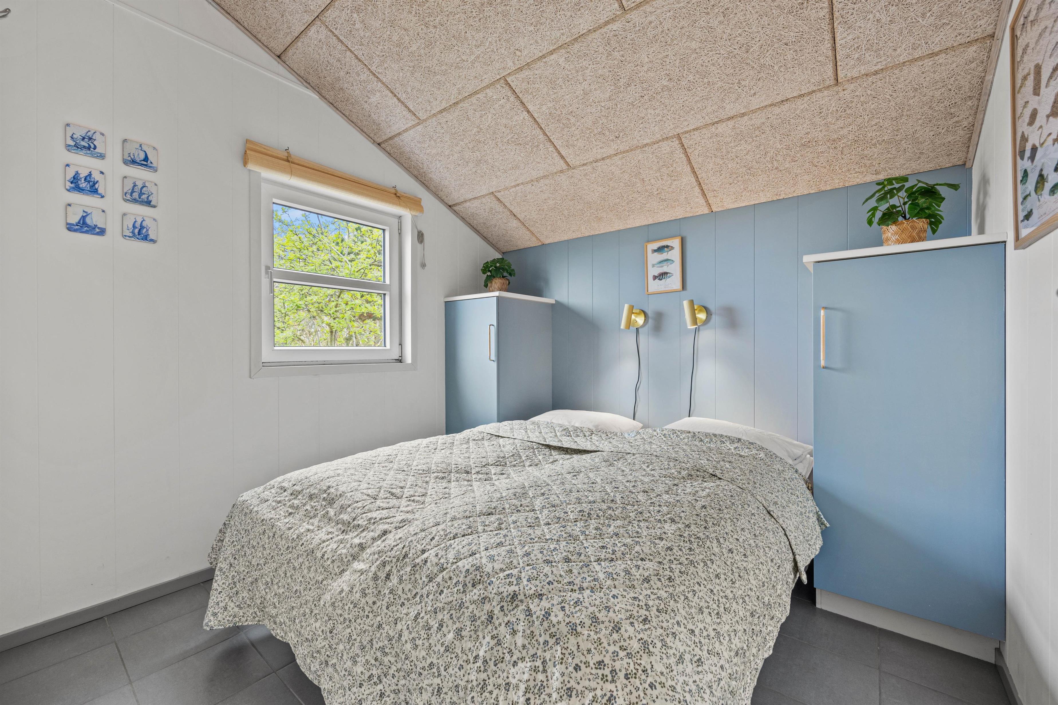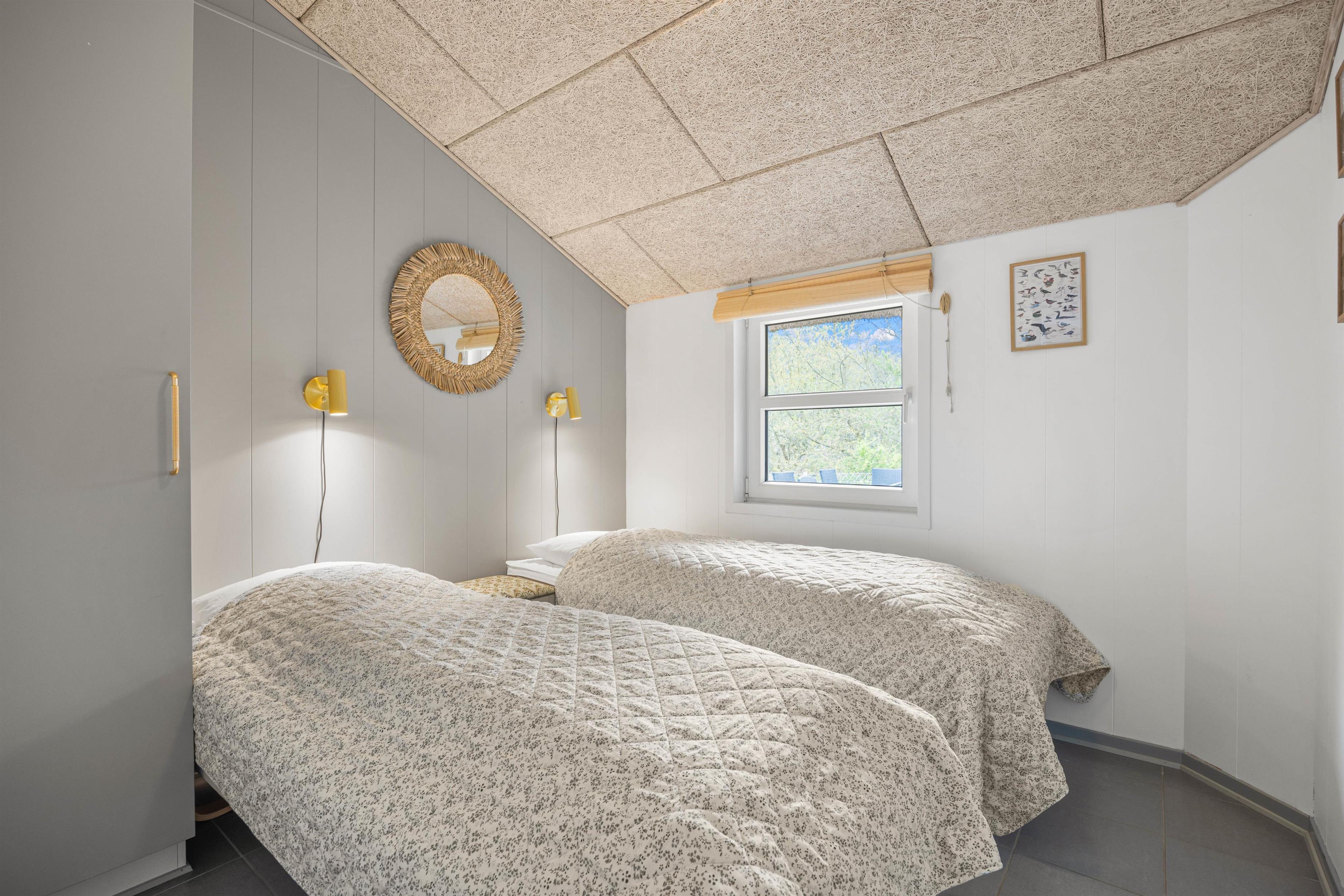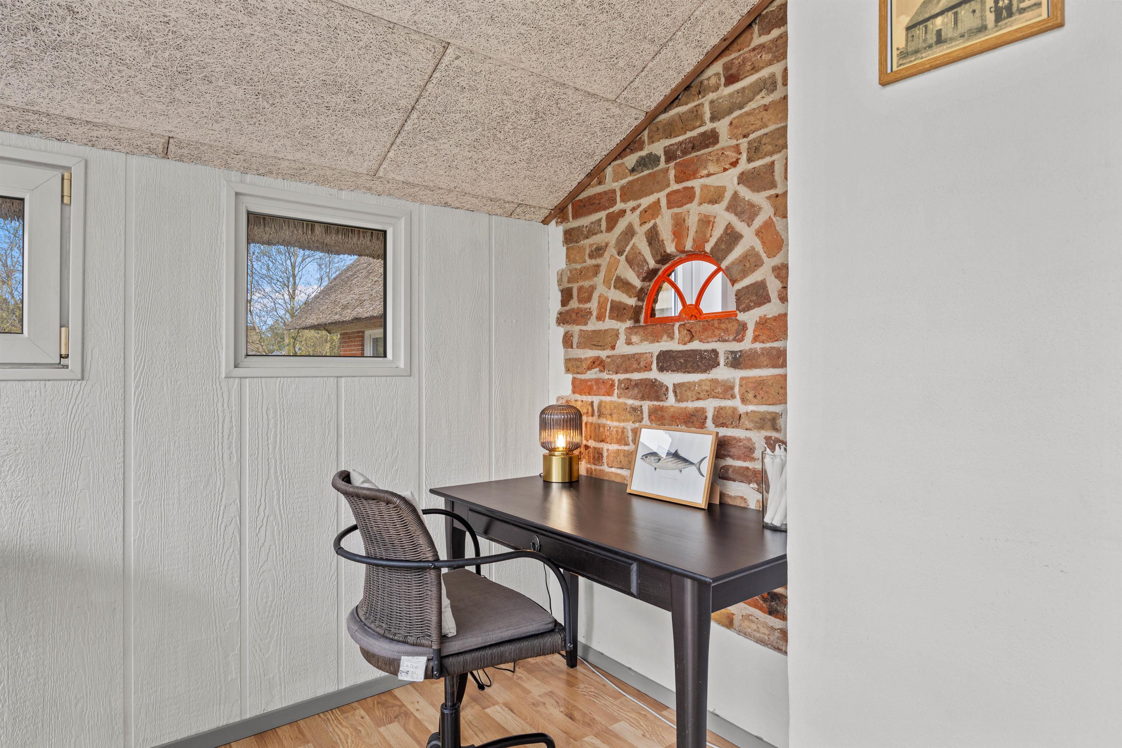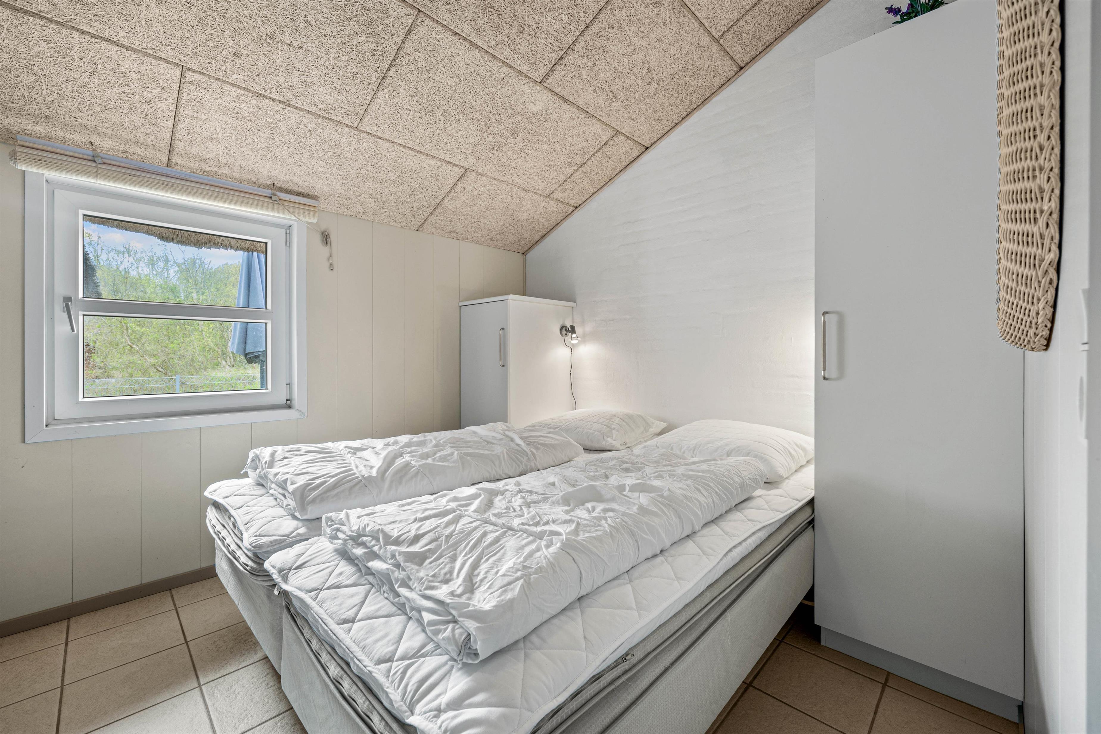 Et superhyggeligt sommerhus med stråtag og masser af plads. Beliggende på en stor naturgrund ligger feriehuset på hele 203 m2. Her er plads til 12 feriegæster og 1 hund. Planløsninger byder blandt andet på 2 badeværelser med gulvvarme, 6 gode værelser samt 1 hyggelige alkove, der også kan anvendes som soveplads. Tre af værelserne er indrettet med dobbeltsenge, 160x200, to er indrettet med en trekvart seng, 140x200, og det sjette er udstyret med to enkeltsenge, 80x200. Her kan I sove trygt og få en god nattesøvn, så I er friske til morgendagens aktiviteter og badning.