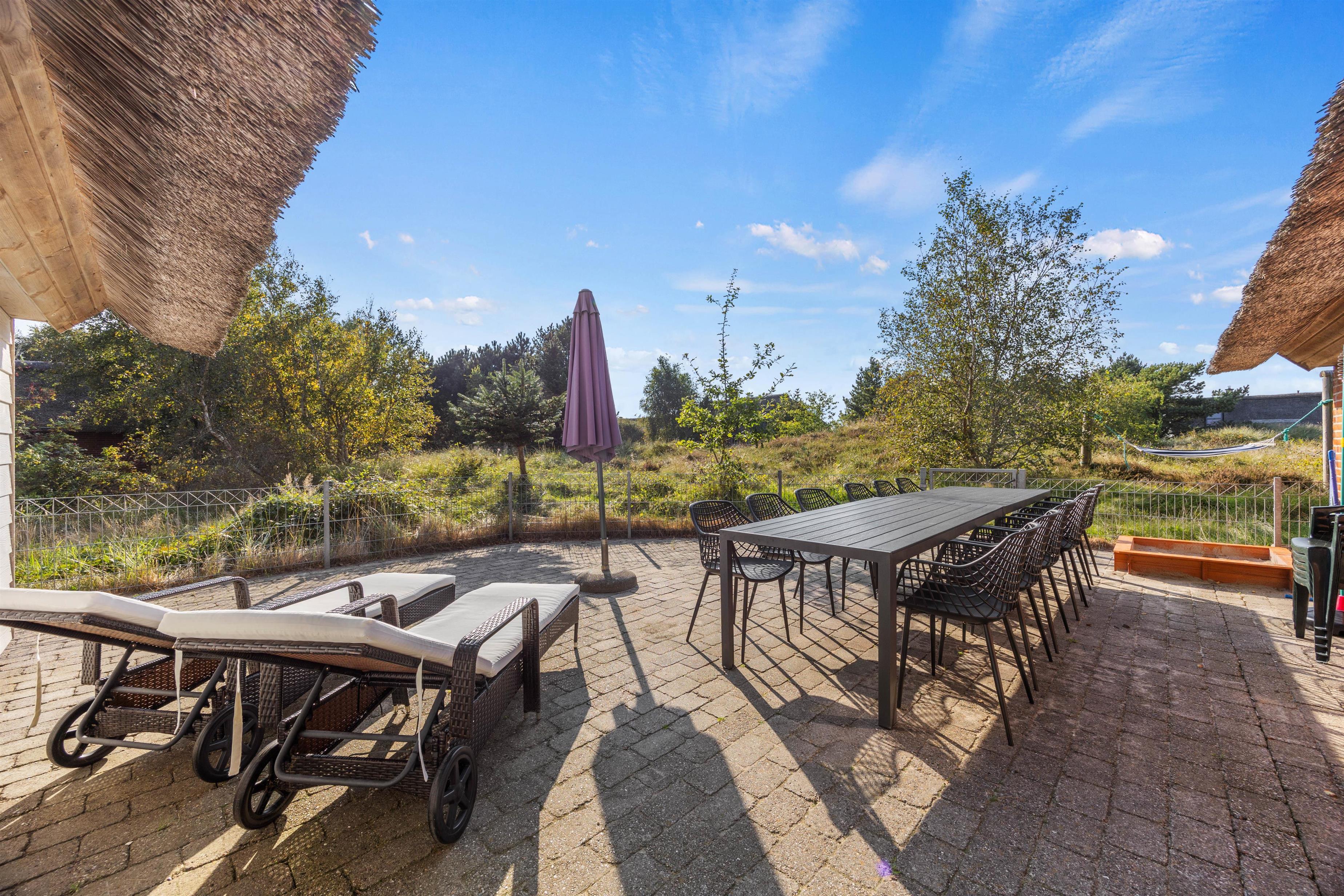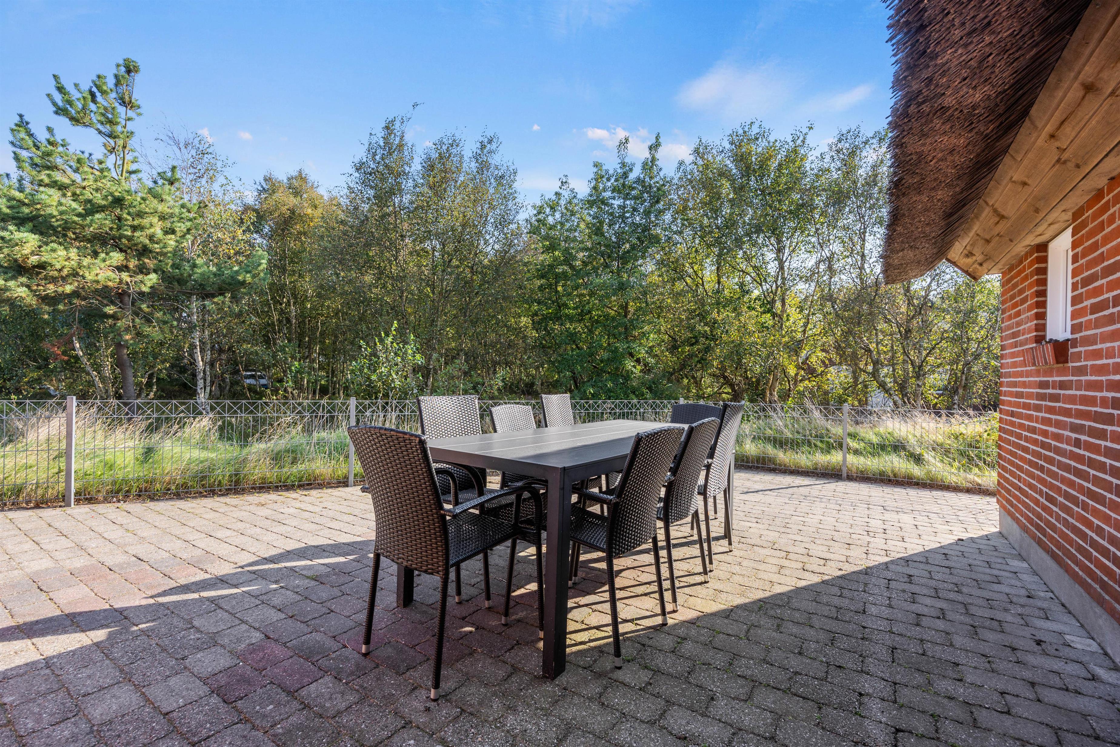 På sydsiden af feriehuset er en dejlig terrasse, hvoraf en del er indhegnet. Her kan I holde nogle fantastiske grillaftner, nyde morgenkaffen og solskinstimerne i løbet af dagen. Havemøblerne står klar til jer! Nyd roen på Rømø, og lad de mindste lege på gyngerne.
