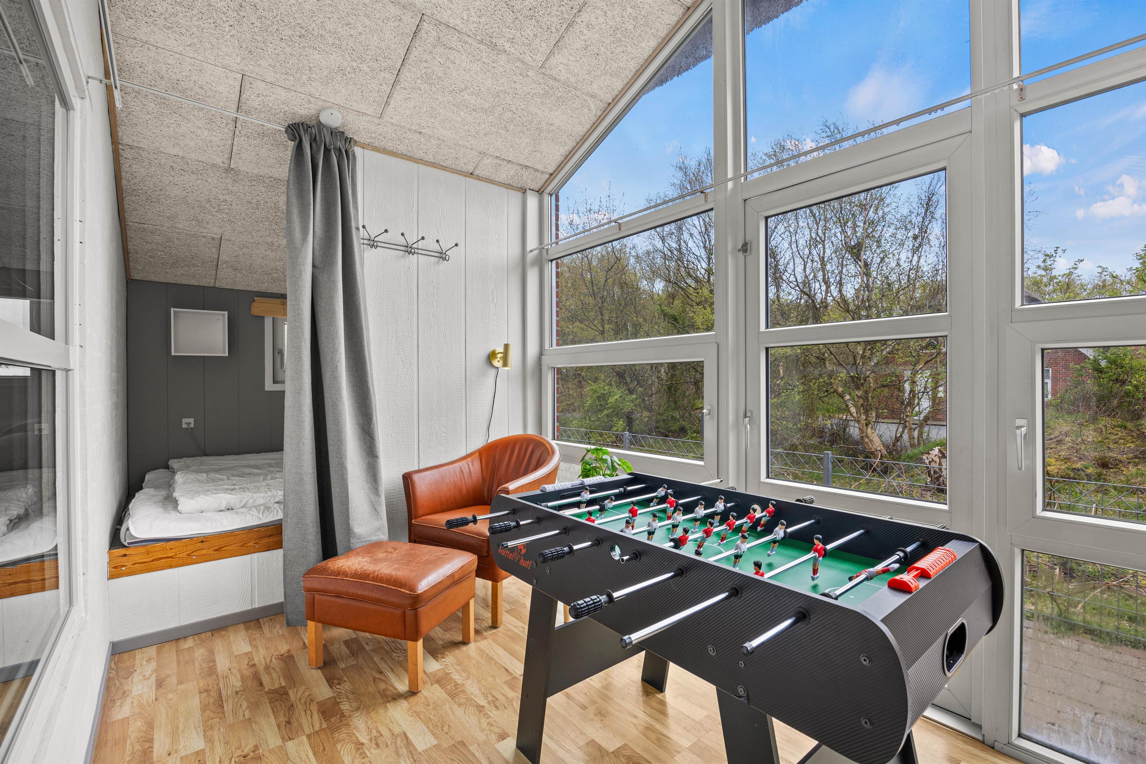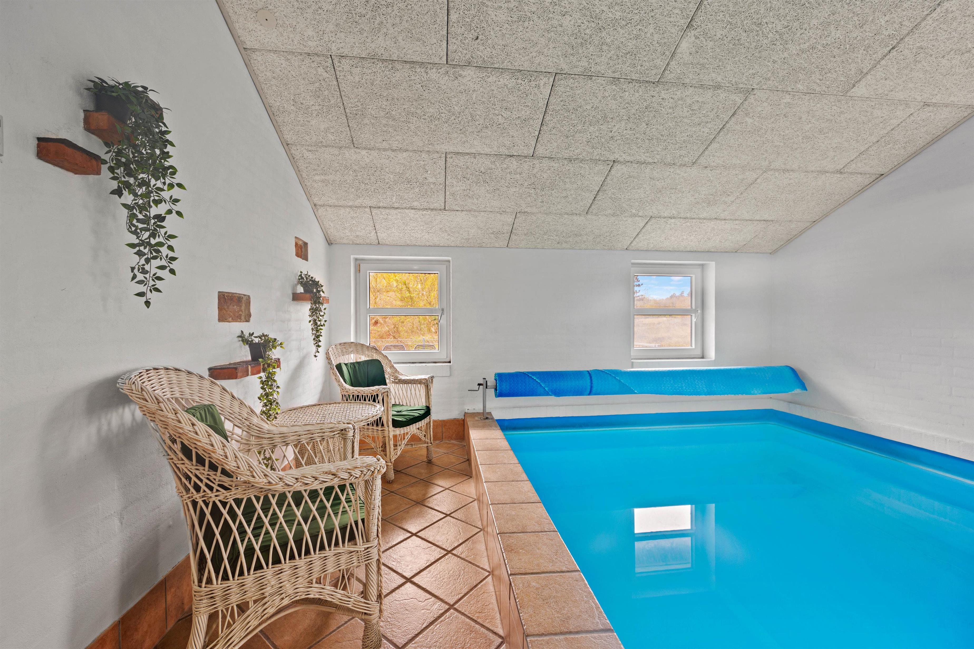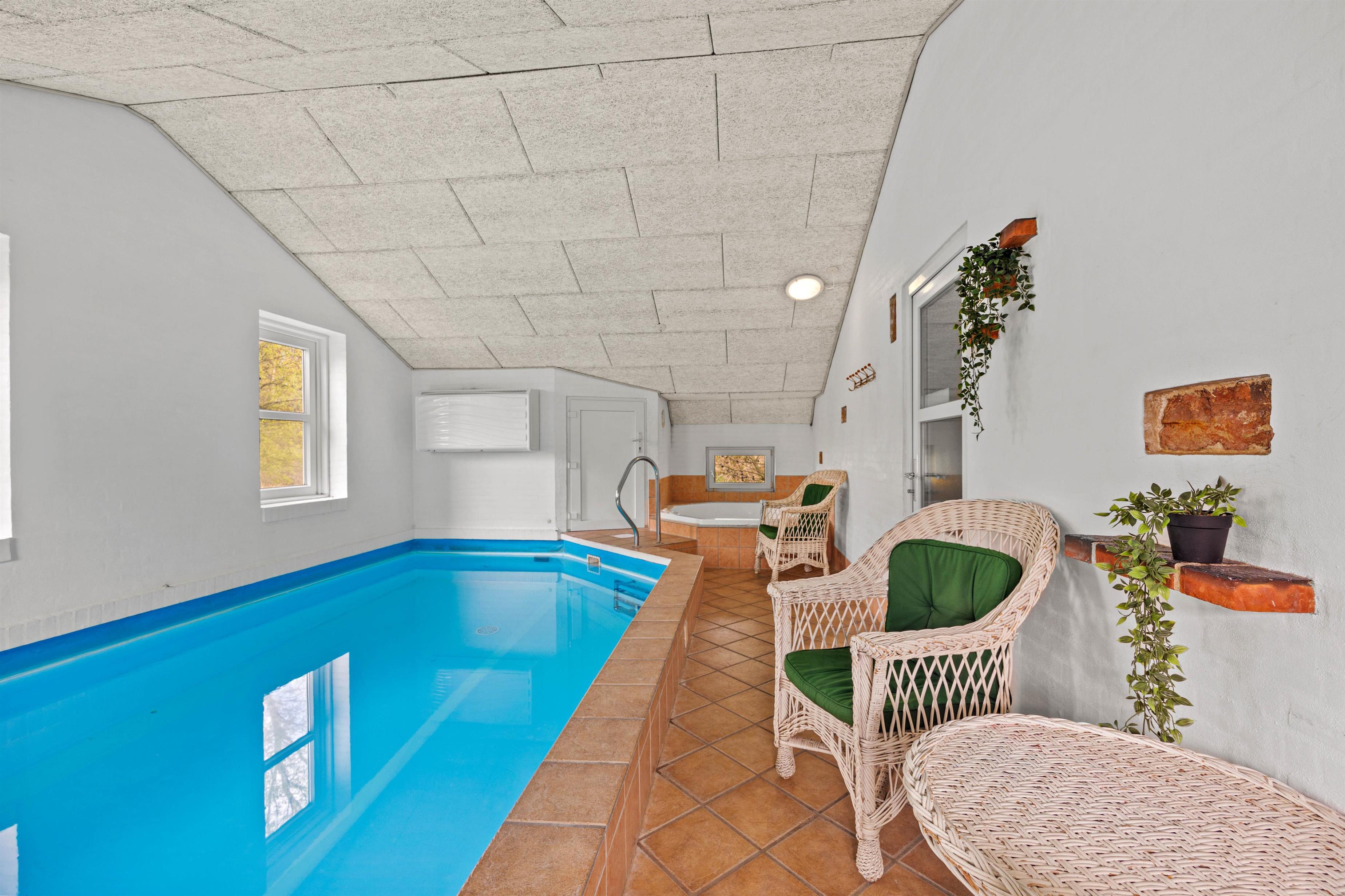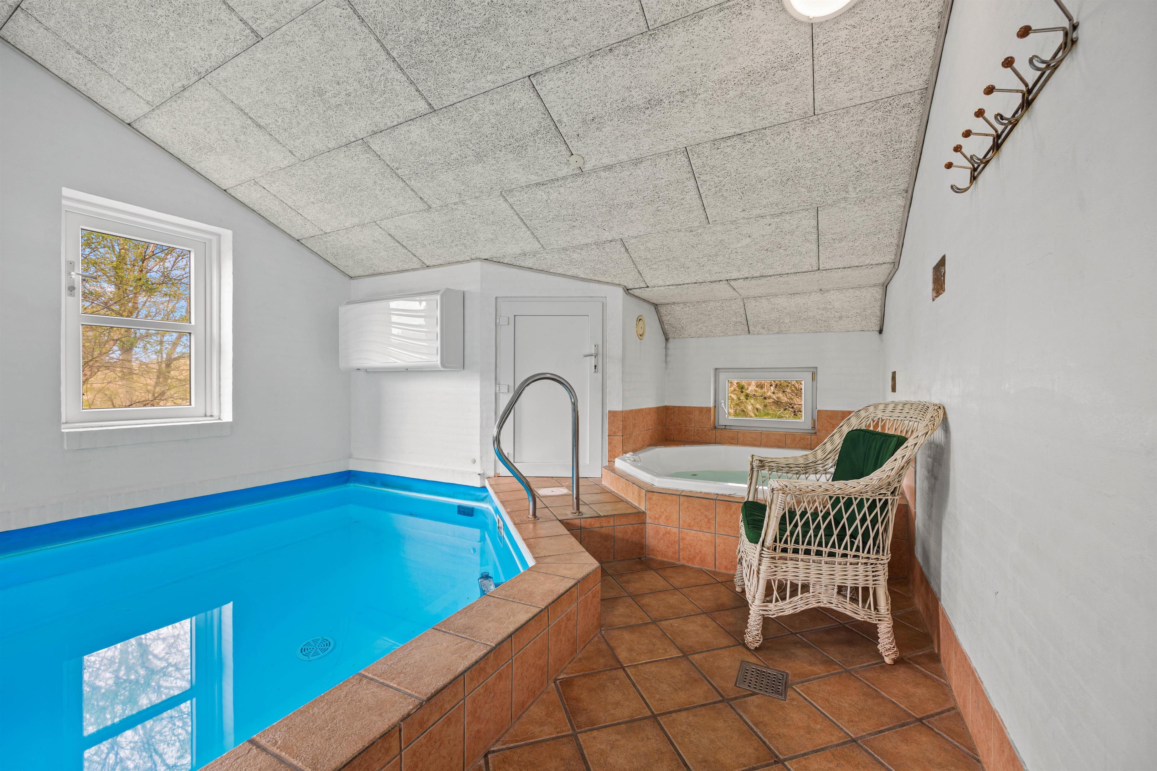 Et højdepunkt i sommerhuset er nemlig det store poolrum. Swimmingpoolen er hele 22 m2, så der er masser af plads til boldlege og vandplaskeri. Uanset vejret kan I her få mange timer til at gå! Et stort boblebad og en dejligvarm sauna har I også til rådighed – kobl helt fra og glem hverdagen for en stund.