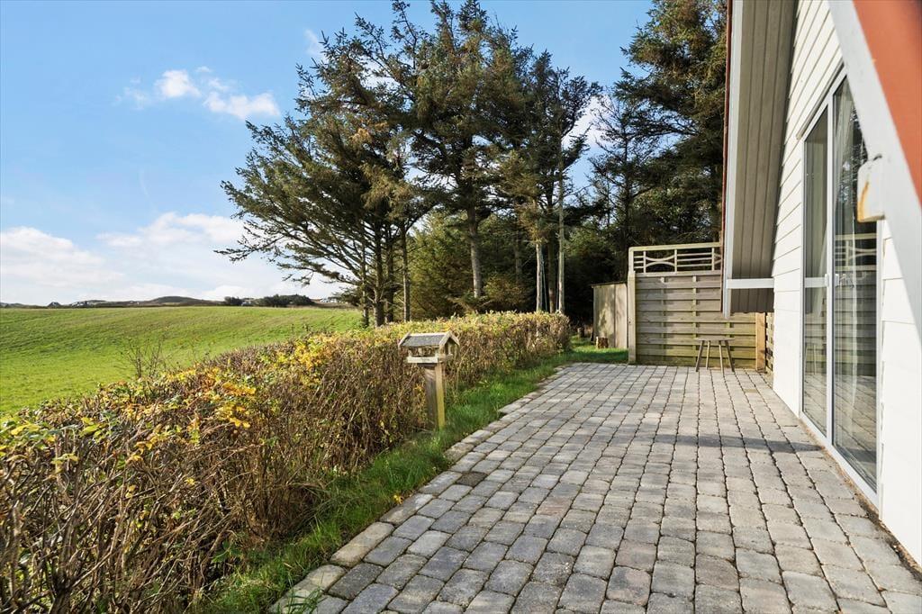 Sommerhusets terrasse går næsten hele vejen rundt om huset, så du altid kan finde en solplet eller et sted med læ, uanset hvor vinden kommer fra. Her kan du nyde dagens første kop kaffe i morgensolen, og senere samles til grillmiddag, mens solen går ned over landskabet. Det lille trædæk i første sals niveau giver et fantastisk udsyn over klitterne og havet – et ideelt sted at nyde stilheden, lyden af bølgerne og synet af den åbne horisont. Omgivelserne indbyder til fredfyldte stunder, og her er rig mulighed for at lade både skuldrene og tempoet falde. Huset ligger privat og ugeneret, og de to medbragte hunde vil elske de mange dufte og stier i det lille skovområde.