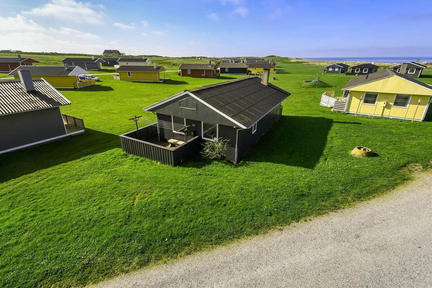 Udgang til delvis overdækket, indhegnet terrasse med massere af muligheder for at finde en plads i solen, da der er terrasser båd foran, bagved og langs medhuset som alle er forbundet og indhegnet. Udgang til terrasseanlægget såvel fra køkkenhjørnet som fra opholdsstuen. Nyd også at husets 700 m2 åbne naturgrund grund ligger lige op til dejligt fællesareal med legeplads med bla. ruchebane og vippe og en hyggelig bålplads. Huset ligger kun 100m fra Vesterhavet. Hold kondien ved lige med en gåtur i det bakkede landskab eller gå en tur ved Vesterhavet som hver dag byder på en ny oplevelse. Hyggeligt og særdeles velholdt feriehus som danner den perfekte ramme om ferien i et unikt og rolig feriehusområde