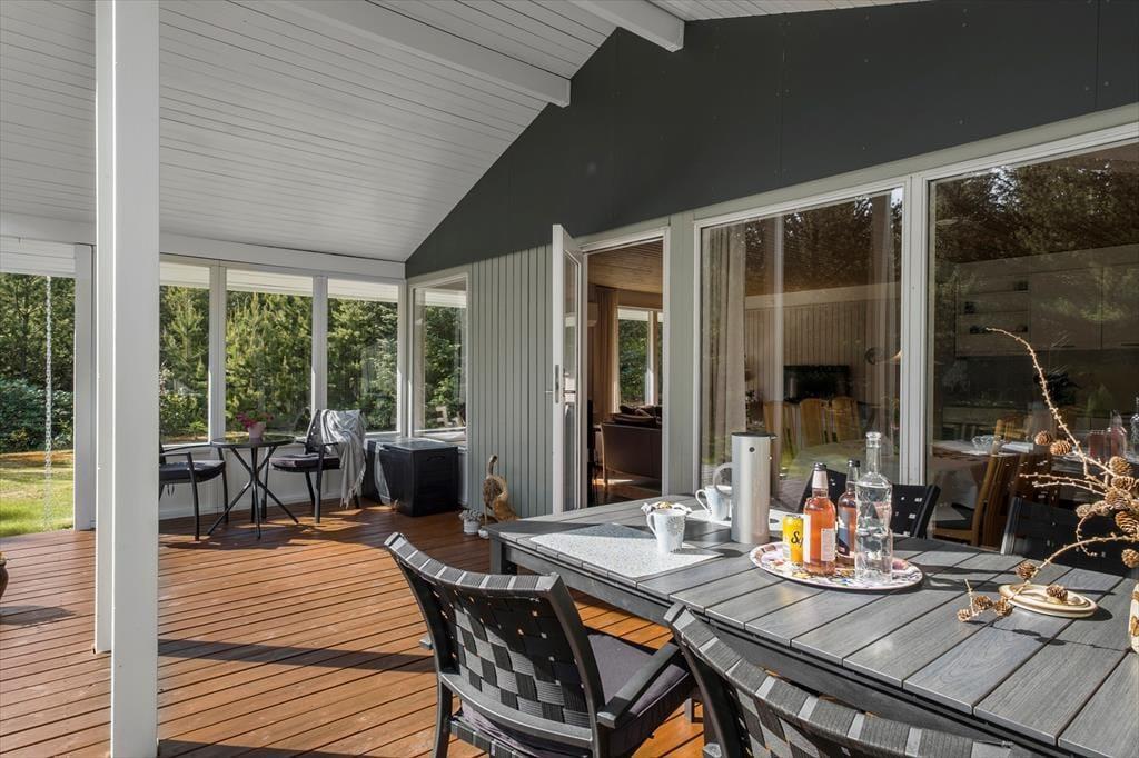 Huset ligger på en stor grund på 2461 m2, som er omkranset af træer og buske, så her får I det helt for jer selv. I kan også se frem til en stor græsplæne med god plads til leg og boldspil. Omkring huset er der desuden to gode terrasser: mod øst en åben terrasse, hvor I kan nyde dagens første kop kaffe, og mod syd en stor og dejlig overdækket terrasse til god mad og hygge. Og er I lidt heldige, kan I faktisk få et rådyr at se mellem træerne i haven tidligt om morgenen eller i skumringen.