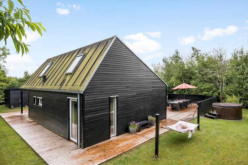 I Tranum Ferieby står dette store sommerhus klar til at byde jer velkommen til nogle herlige dage. Inden døre kan I blandt andet nyde livet i spabadet og saunaen, og ude på den helt ugenerede grund er der både vildmarksbad, shelter og et skønt terrassemiljø– og så kan I desuden glæde jer til alle feriebyens sjove og familievenlige fællesfaciliteter.
